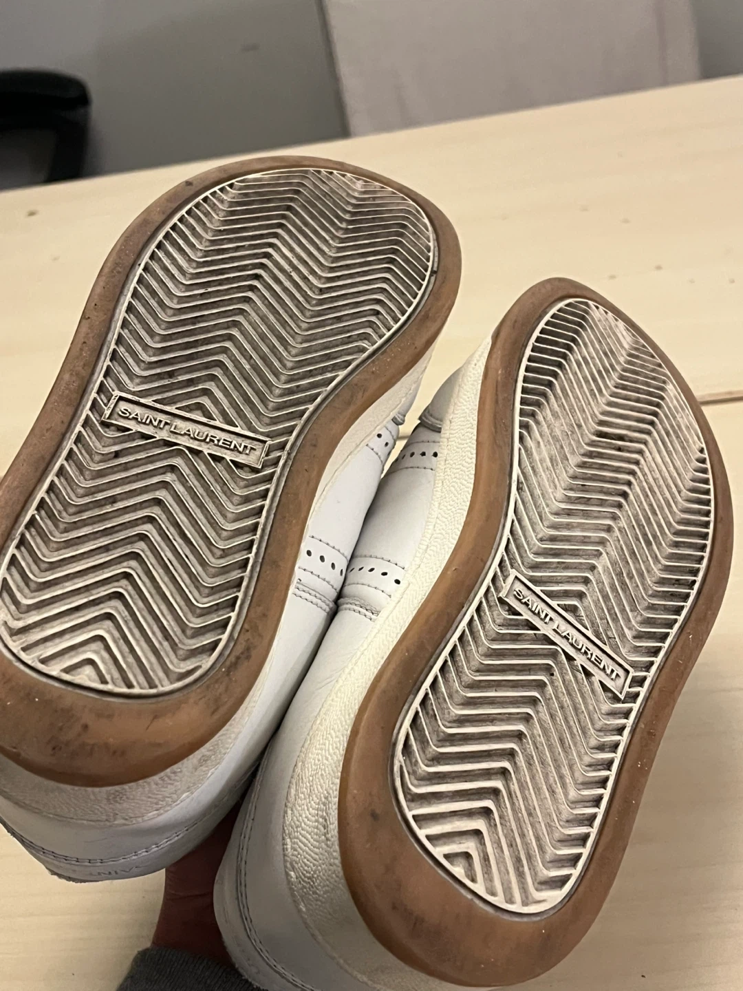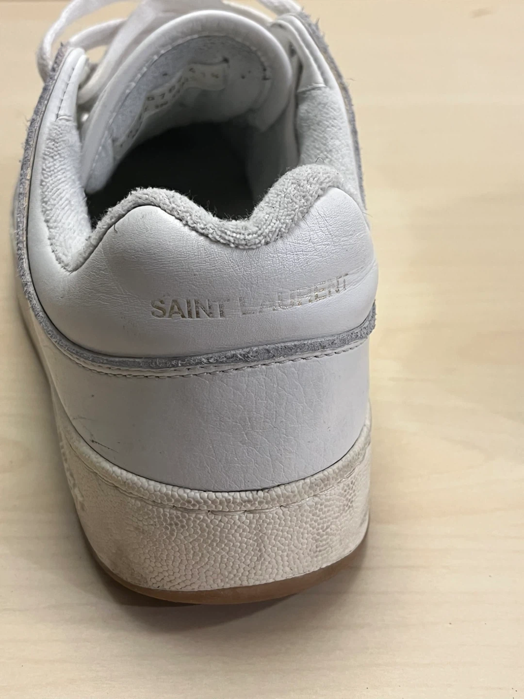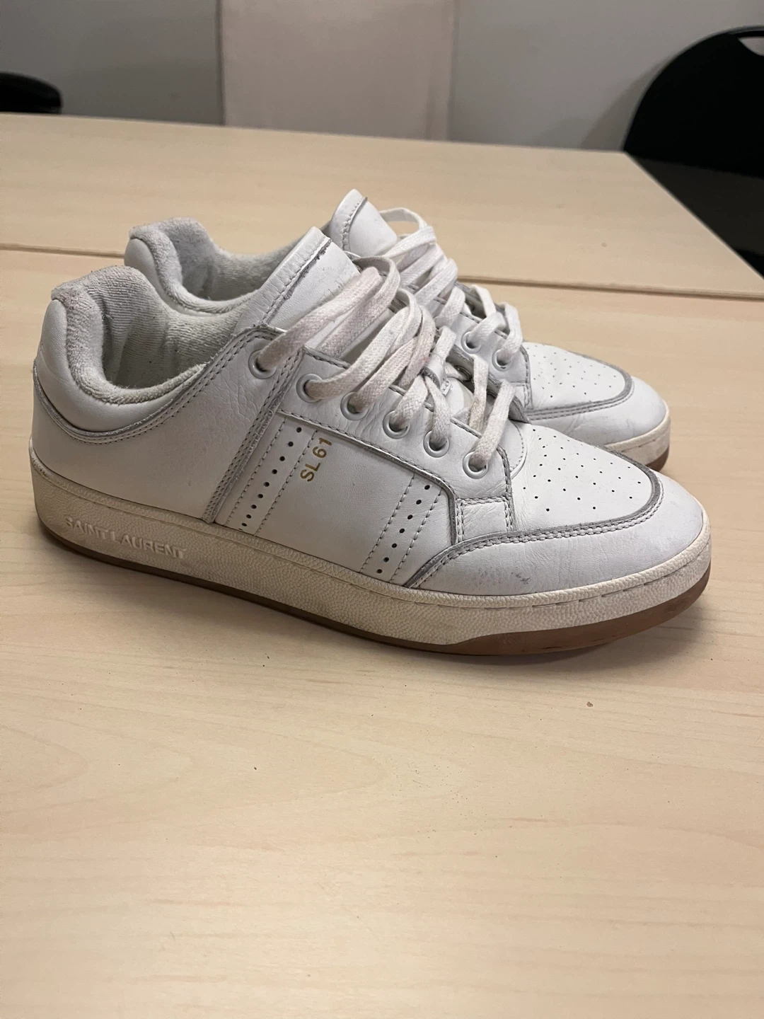 Selling a pair of Saint Laurent SL 61 sneakers in white. They show some signs of wear, but still have lots of life left in them. Great for a casual look!