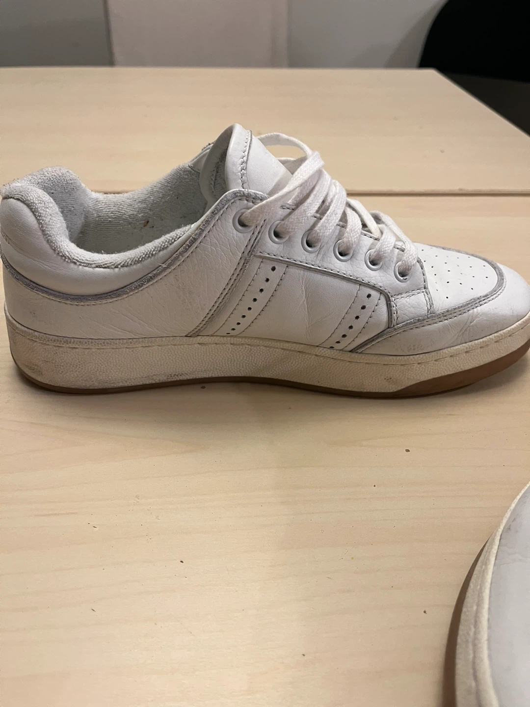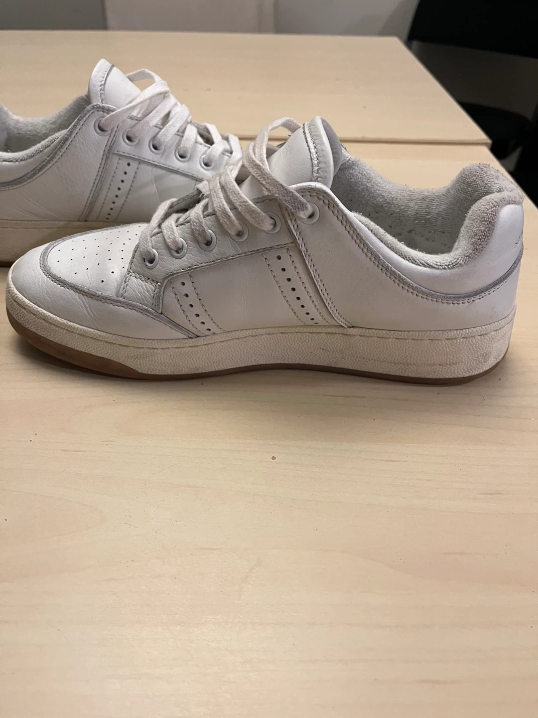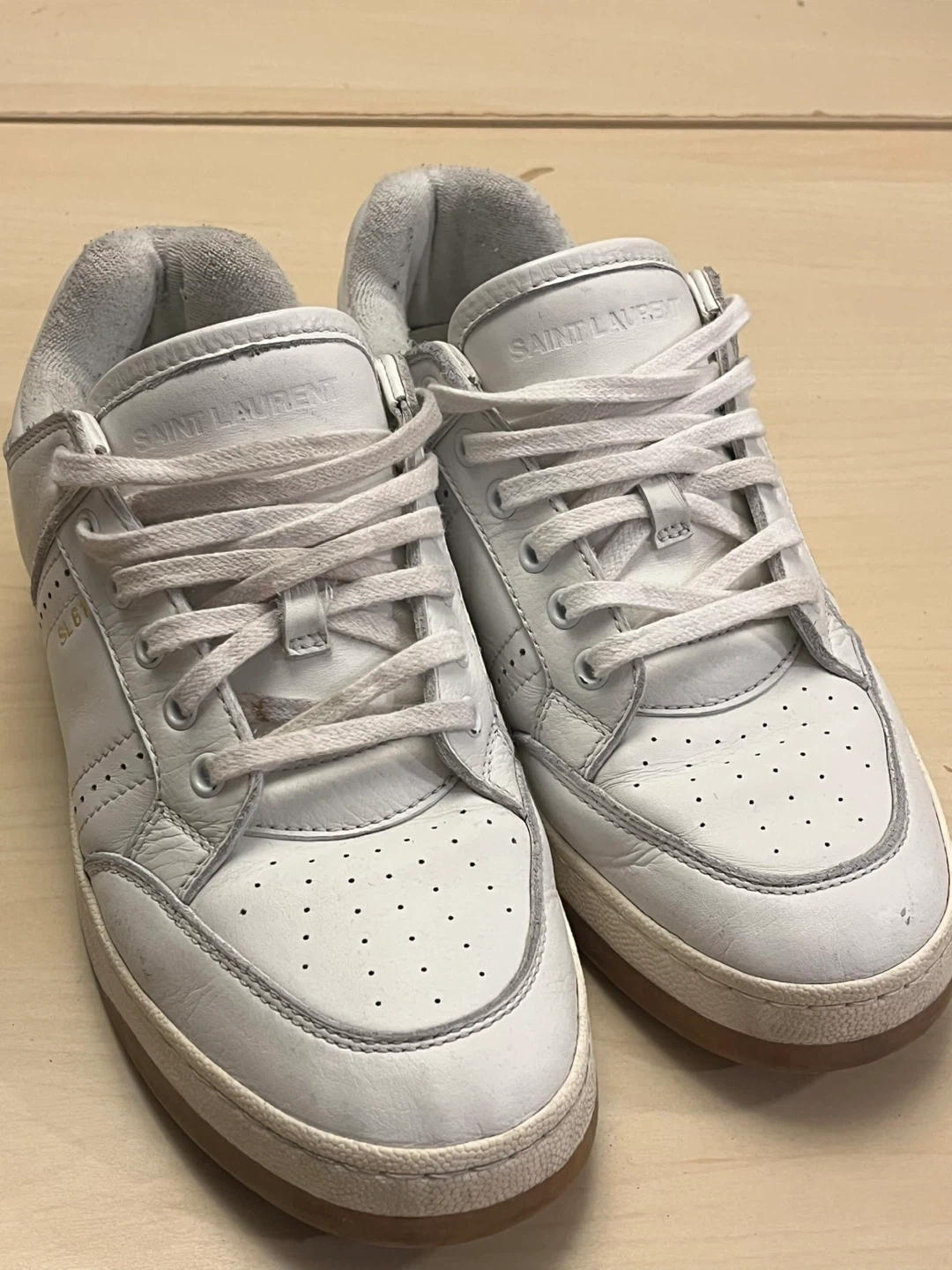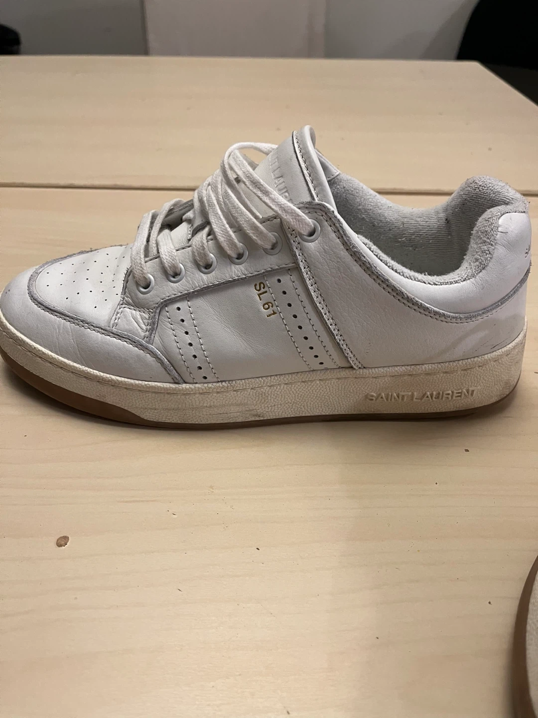 Selling a pair of Saint Laurent SL 61 sneakers in white. They show some signs of wear, but still have lots of life left in them. Great for a casual look!