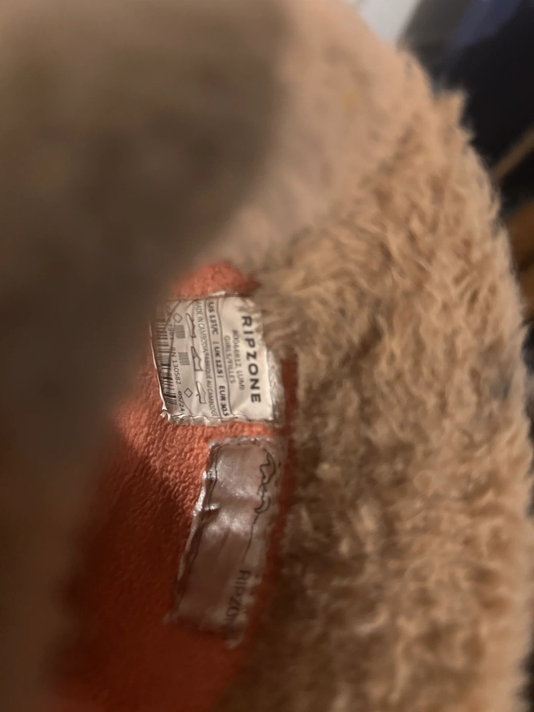 Cozy Ripzone girls' winter boots in a tan suede-like material with fluffy faux fur lining. The boots feature a contrasting pink sole and trim. These boots are perfect for keeping little feet warm during colder months!