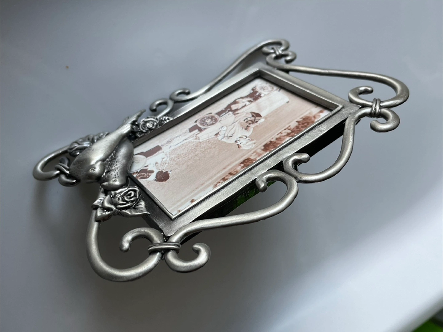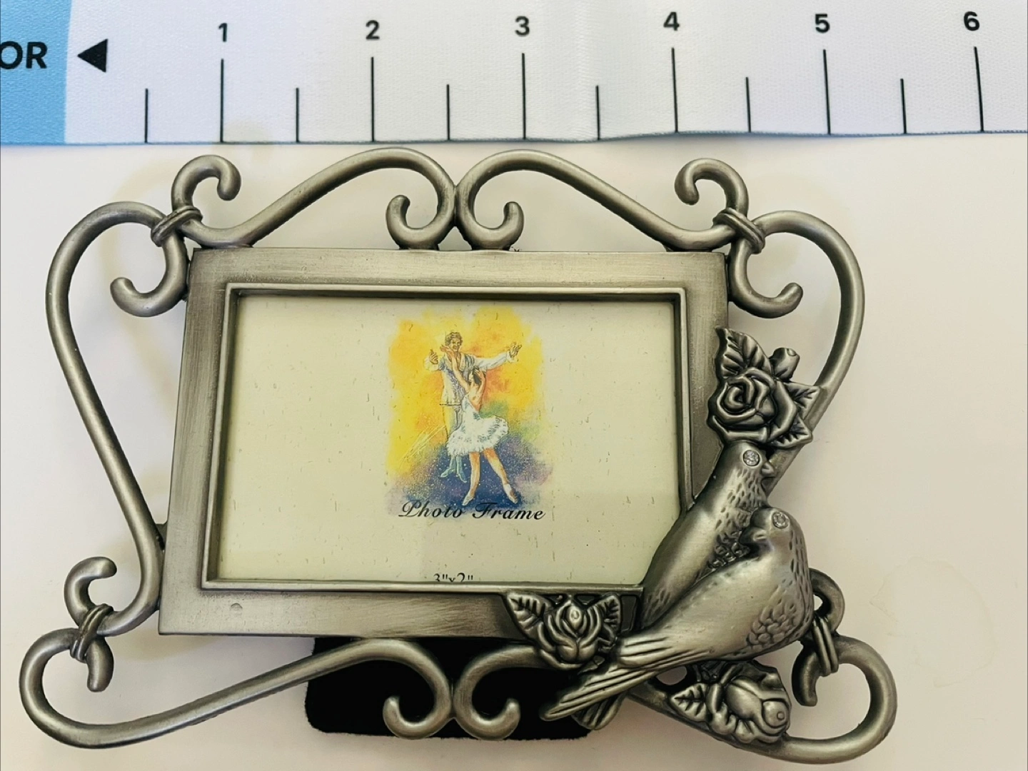 Vintage Pewter Metal Picture Frames With Pretty Dove Design