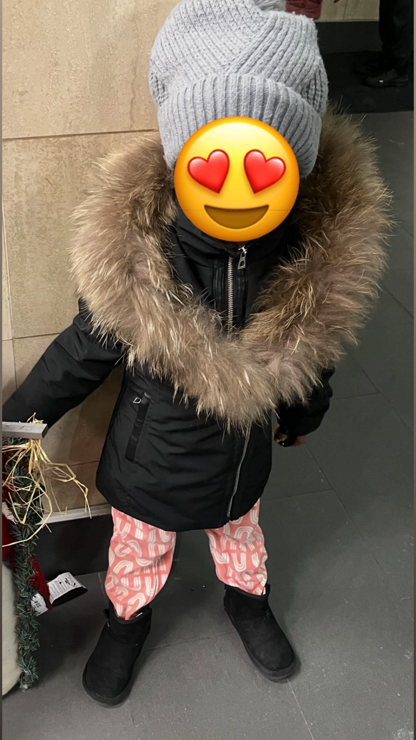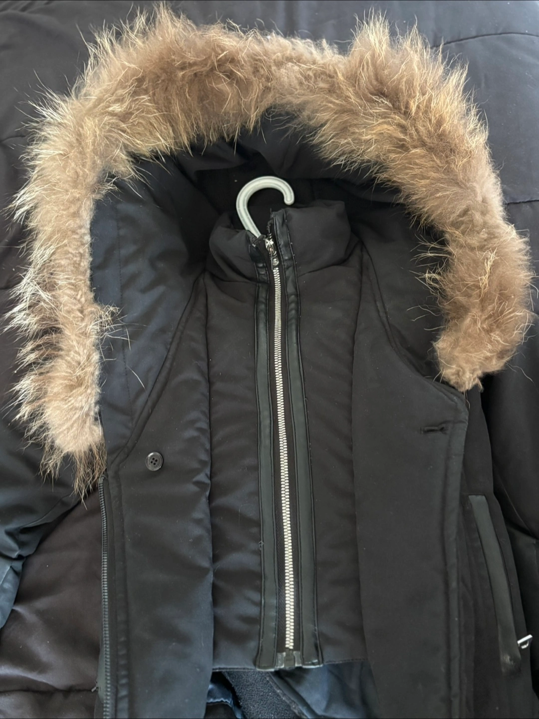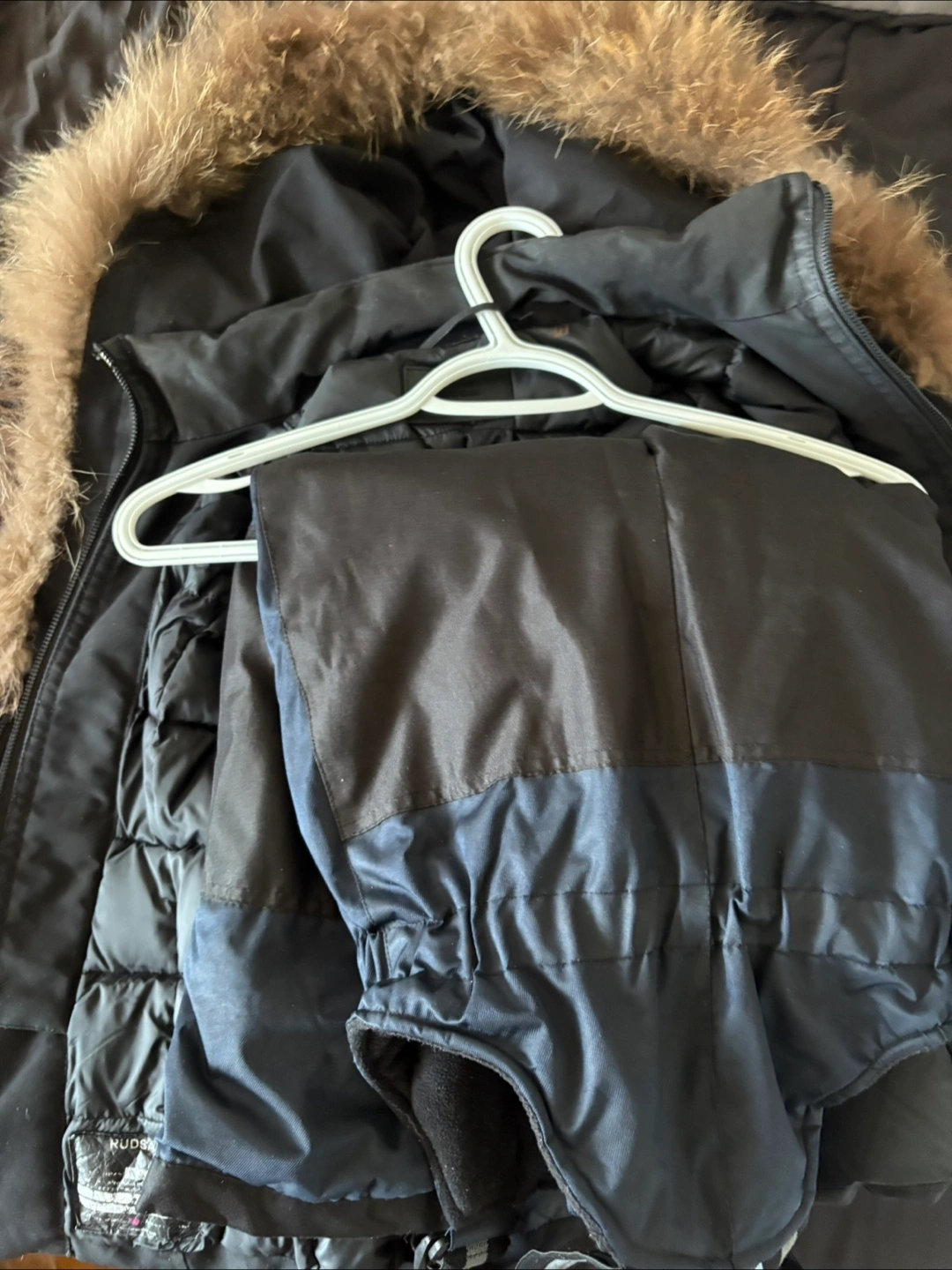 This will also come with a free pair of snow pants (Navy colour) in size 5. Needs to be dry cleaned and fur brushed with pet brush do to storage.