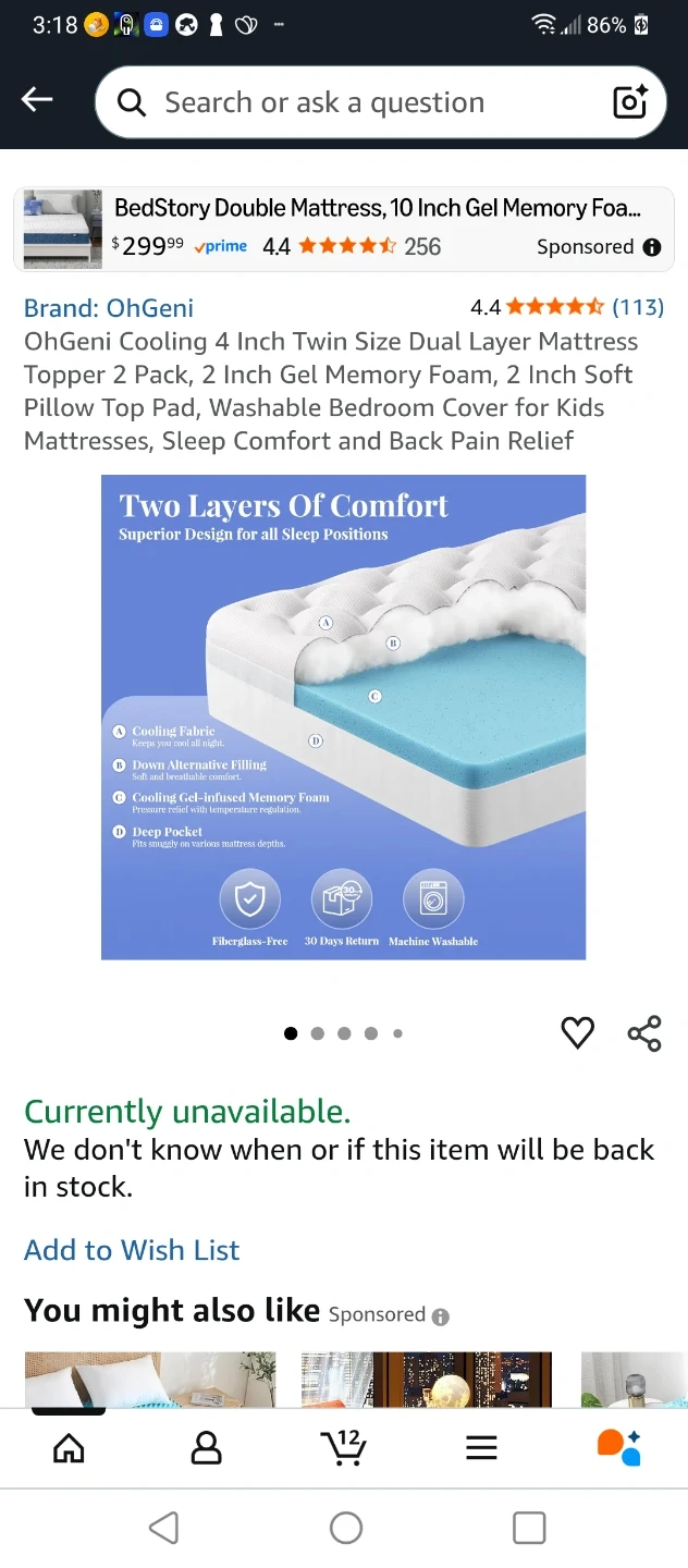 š§”BRAND NEW DUAL LAYER 4 INCH KING SIZE MATTRESS TOPPER