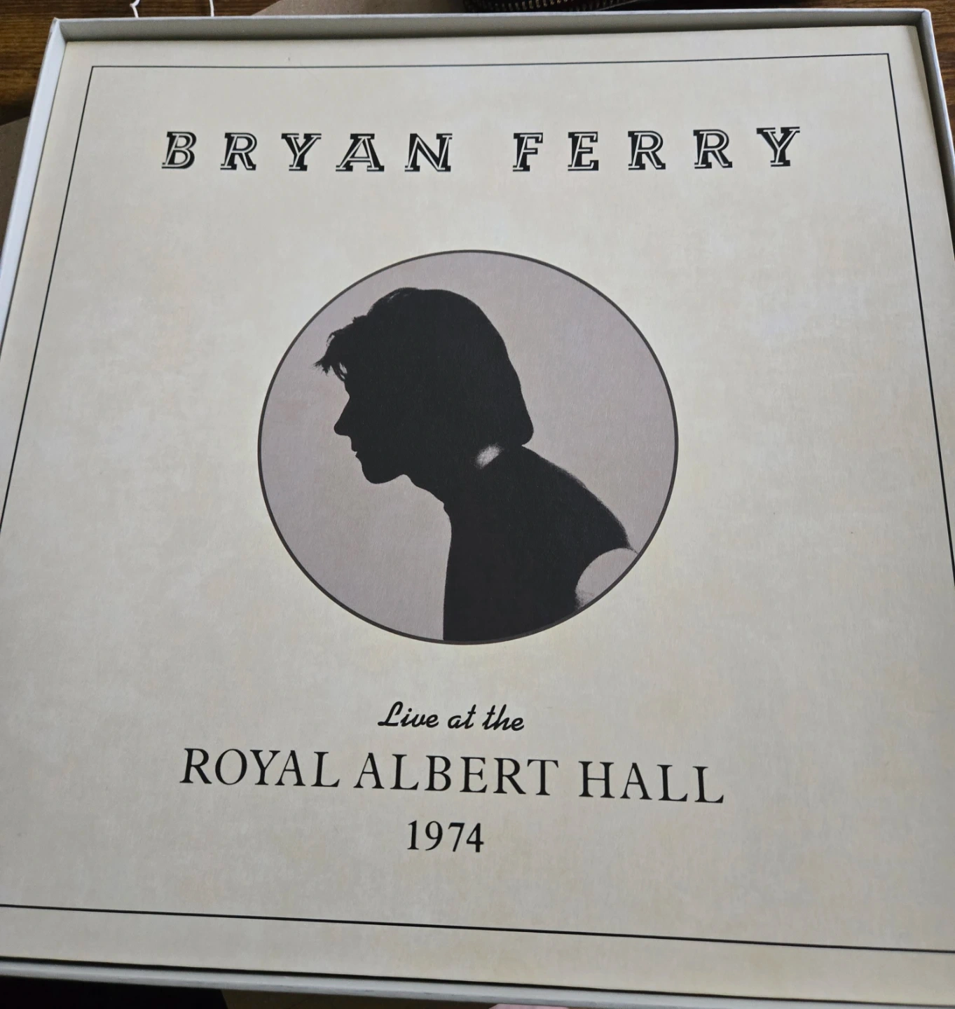 This is the Bryan Ferry 'Live at the Royal Albert Hall 1974' box set. It contains a record, ticket stub, letters, and related documents from the era. The box set includes photos and printed materials from the event. Plus a CD. This is extremely limited and perfect for any Ferry or Roxy Music fan!