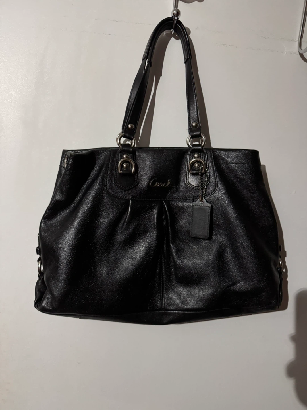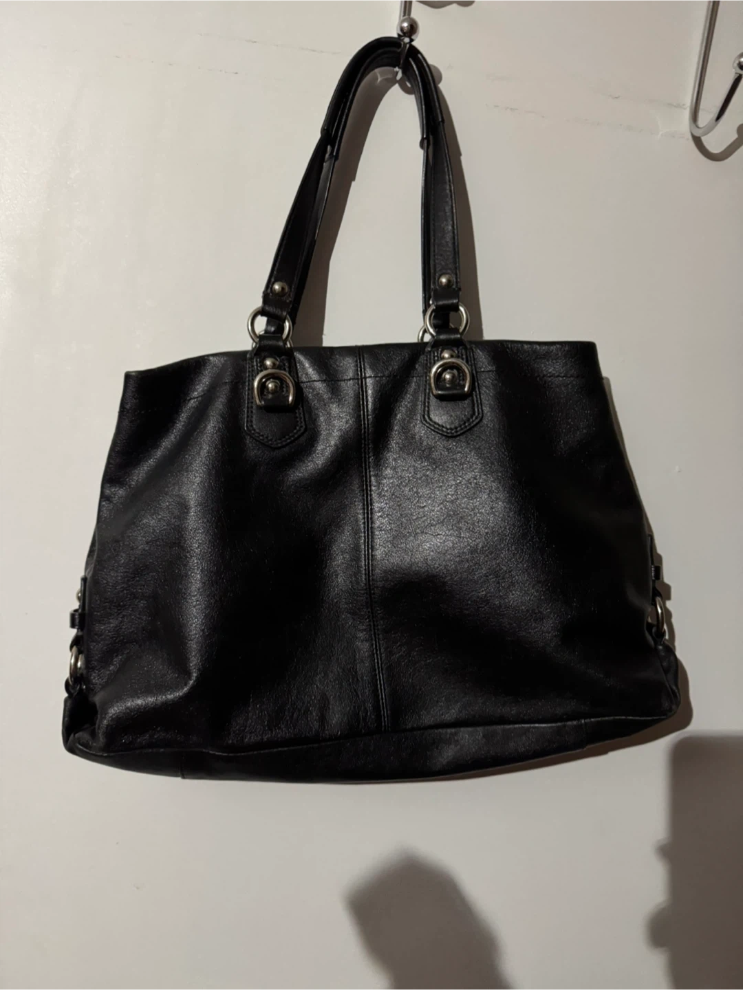 Selling a gently used Coach black leather tote bag. It's in great condition and perfect for everyday use. The bag features a spacious interior and comfortable shoulder straps.