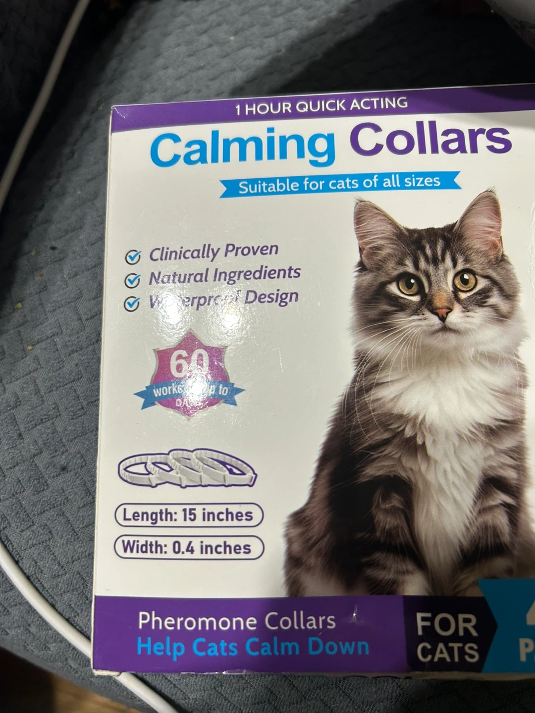 Brand new calming collars for cats. These collars are designed to help cats with stress prevention and separation anxiety. Each collar is individually packaged. 15 inches long for cats of all sizes.