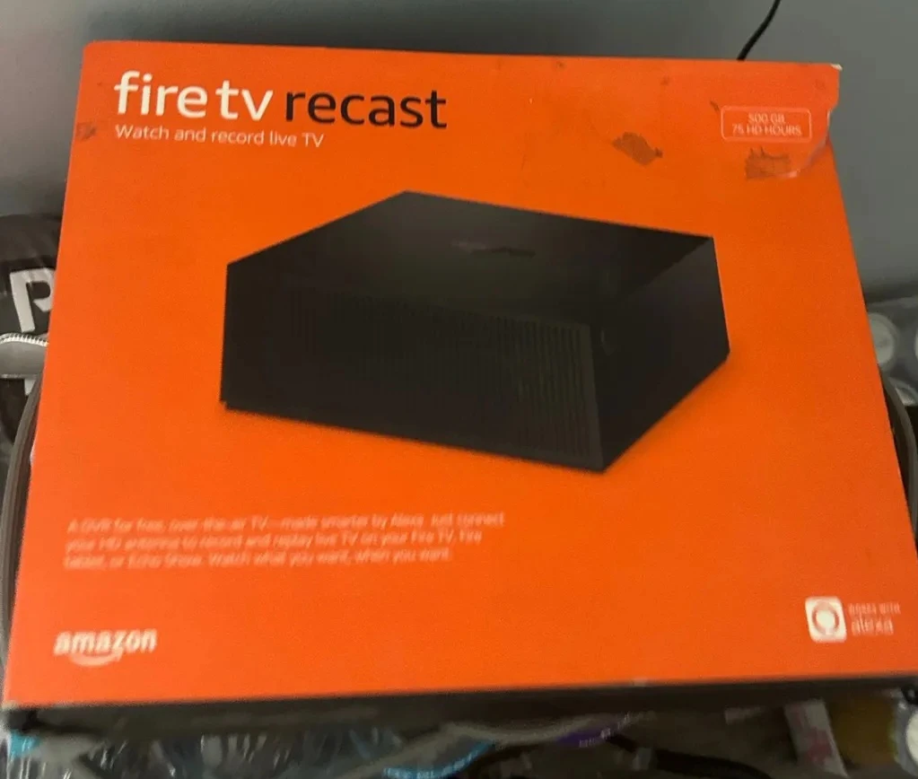 Watch and record live TV with this Amazon Fire TV Recast. It's a DVR for free, over-the-air TV. This unit has 500 GB storage, supporting up to 75 HD hours. Includes original box and power adapter. Open box