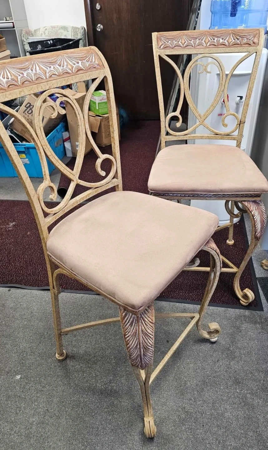 In very good condition! Michael Aaron Collection. 3 piece Bar Stool Height Dinette Set. Includes two bar height chairs and table with glass top. All handcrafted and heavy. Retails over $1,000 and I'm asking only $150. Need gone ASAP!!