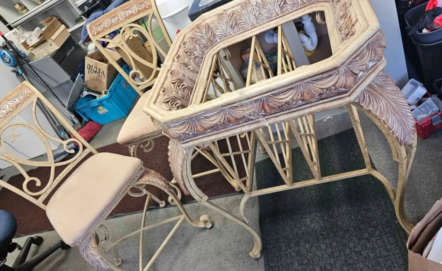 In very good condition! Michael Aaron Collection. 3 piece Bar Stool Height Dinette Set. Includes two bar height chairs and table with glass top. All handcrafted and heavy. Retails over $1,000 and I'm asking only $150. Need gone ASAP!!