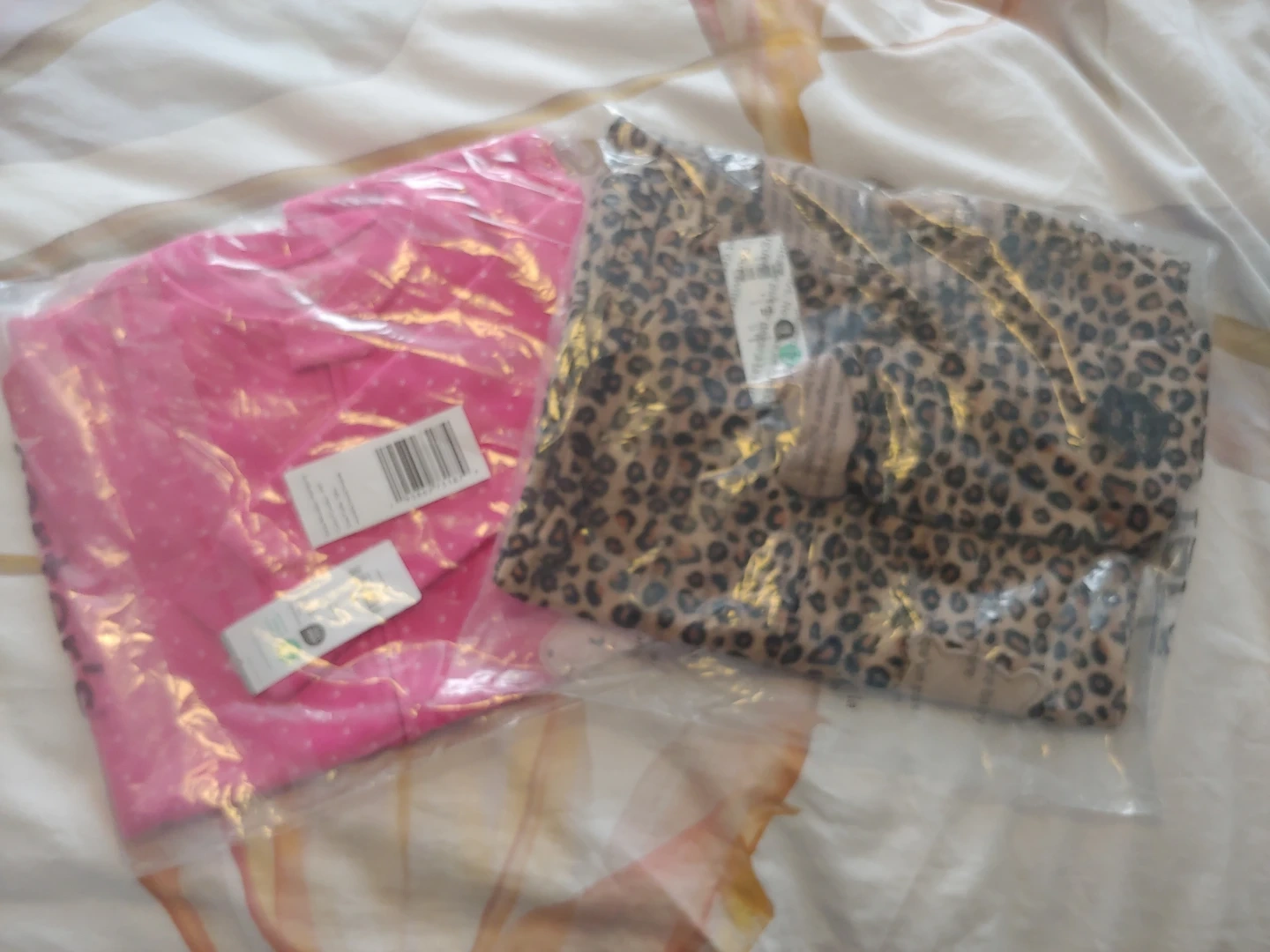 Two brand new cozy fleece footless pajamas for your little one. One features a fun unicorn design with pink polka dots, and the other has a classic leopard print. Both are size 24 months. Both for $10 or $5 each.