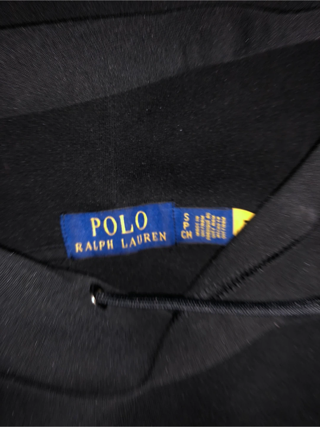 This is a black Polo Ralph Lauren hoodie. It features the signature red embroidered pony logo. The size is small. No rips No stains