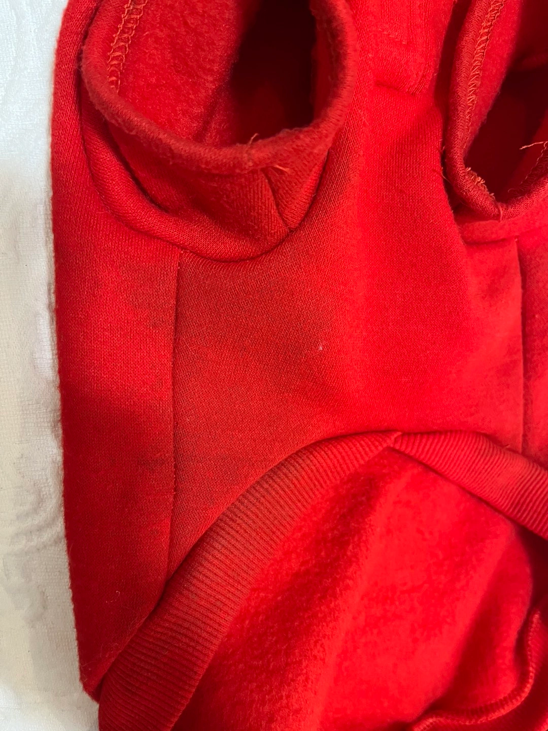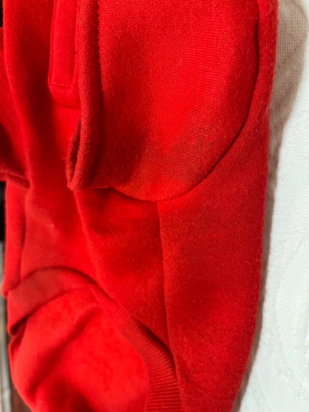 Inside of sweater is super soft and warm. Top of sweater looks brand new but where the legs go in theres a bit of a dark tint from outdoor use (very subtle and hard to see in real life).
