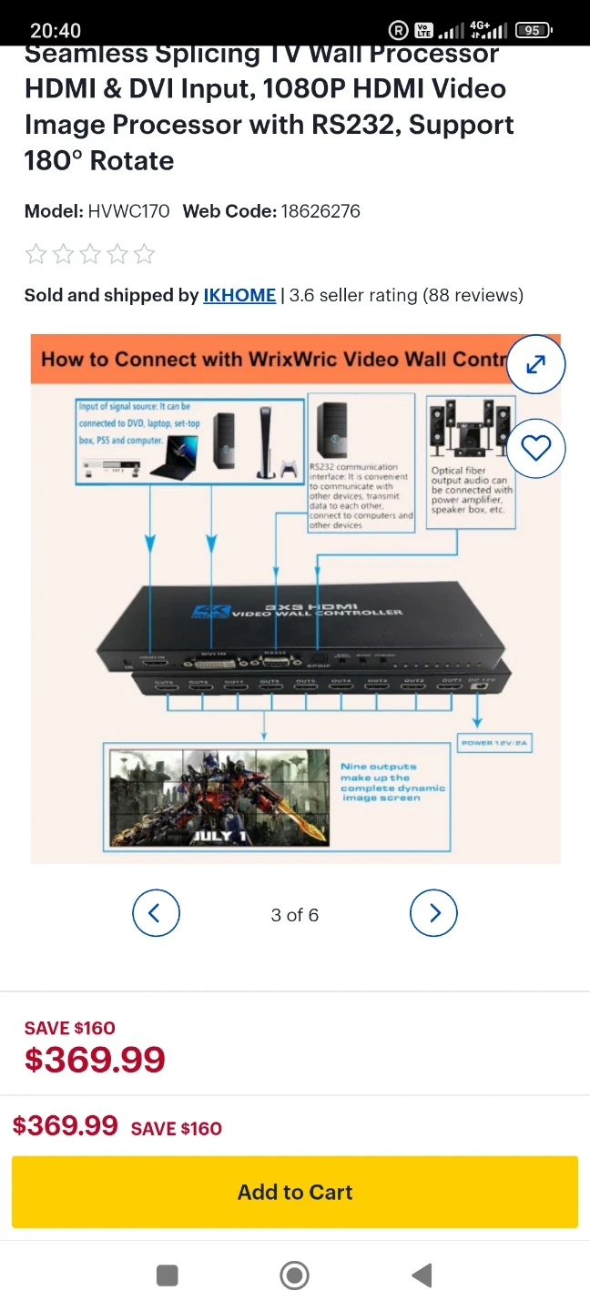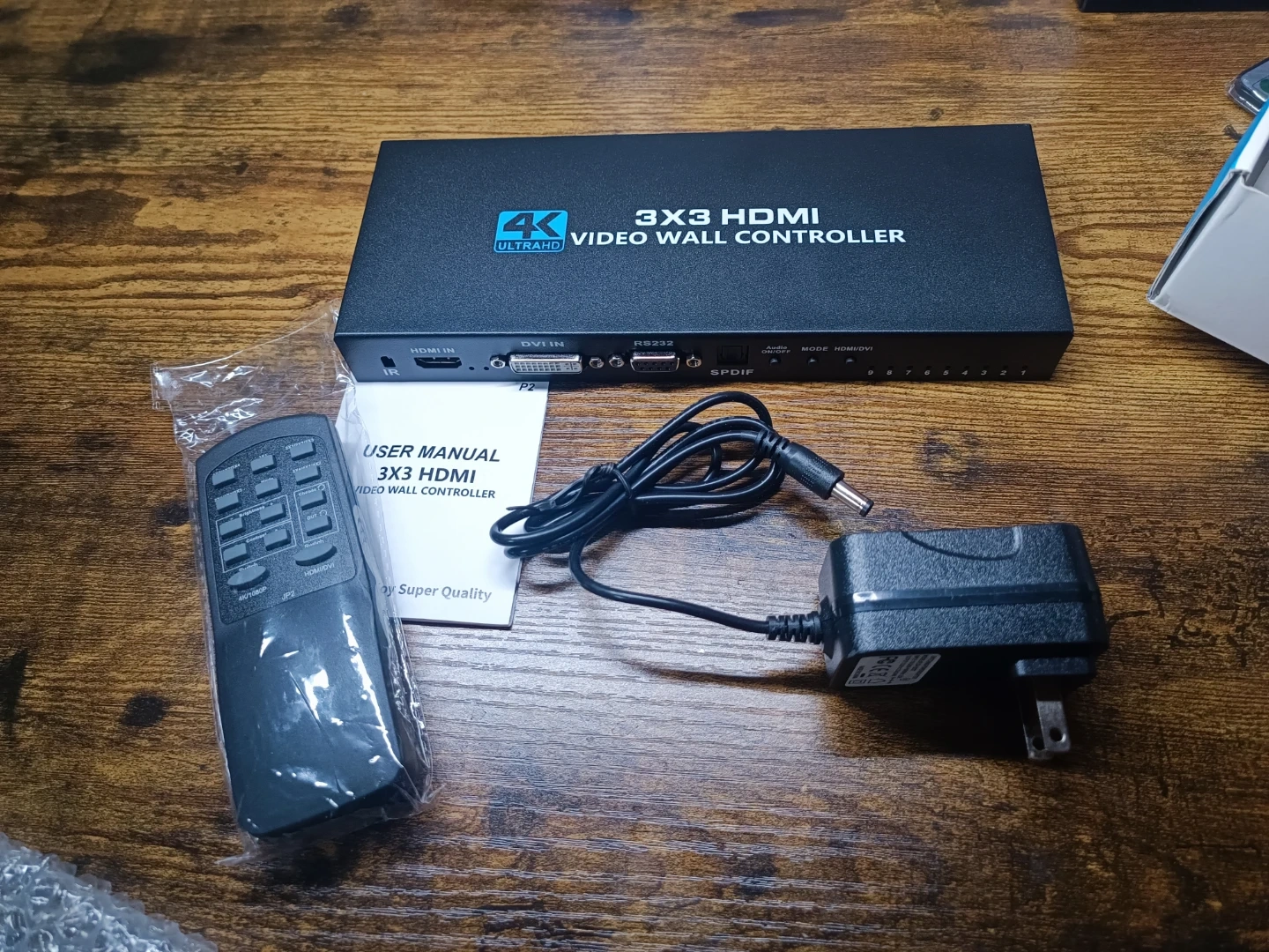 Selling a 4K Ultra HD 3x3 HDMI video wall controller. It supports seamless splicing for TV walls. The controller has HDMI & DVI input, 1080P HDMI video image processor with RS232, and supports 180° rotation. Model number is HVWC170. Includes the user manual, remote, and power adapter.