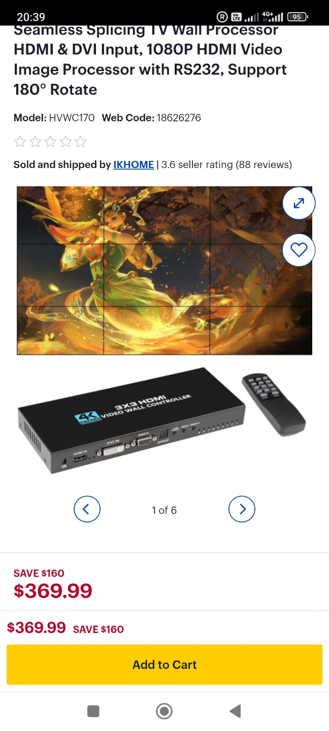 Selling a 4K Ultra HD 3x3 HDMI video wall controller. It supports seamless splicing for TV walls. The controller has HDMI & DVI input, 1080P HDMI video image processor with RS232, and supports 180° rotation. Model number is HVWC170. Includes the user manual, remote, and power adapter.
