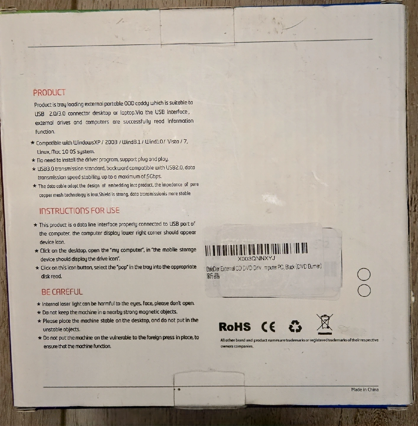 Selling an external DVD-RW drive. It is tray loading and suitable for USB 2.0/3.0 connector desktop or laptop. Via the USB interface, external drives and computers are successfully read information function. Compatible with Windows XP/2003/Wind8.1/Wind10/Vista/7, Linux, Mac OS systems