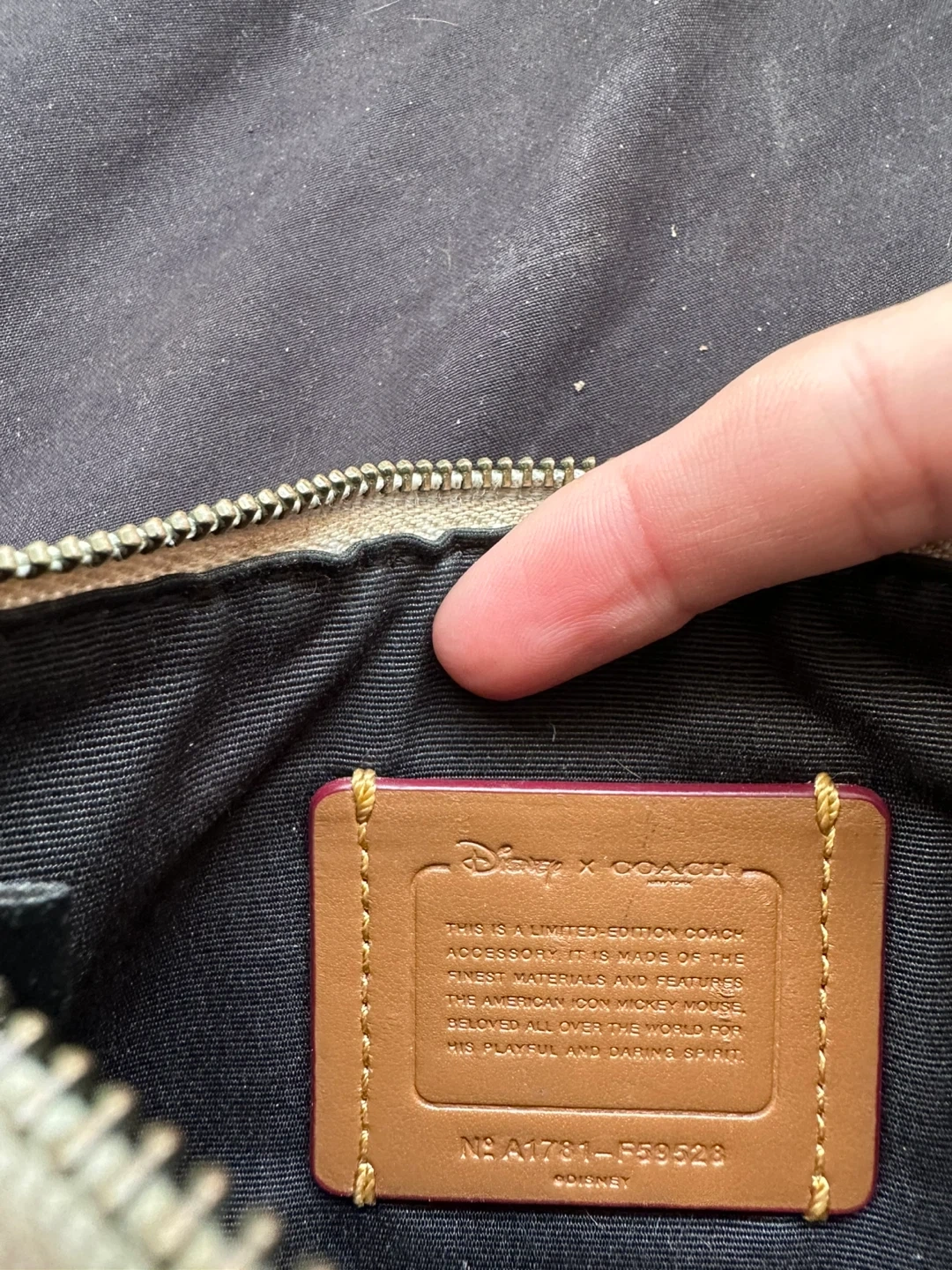 Coach X Disney limited edition Mickey Mouse wristlet. Off-white leather , zip closure. Small interior pocket. Wrist strap. Has some minor markings due to being used but otherwise keep in great condition