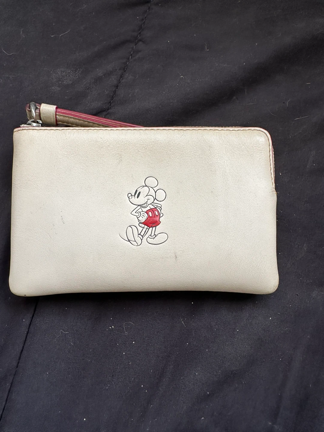 Coach X Disney limited edition Mickey Mouse wristlet. Off-white leather , zip closure. Small interior pocket. Wrist strap. Has some minor markings due to being used but otherwise keep in great condition