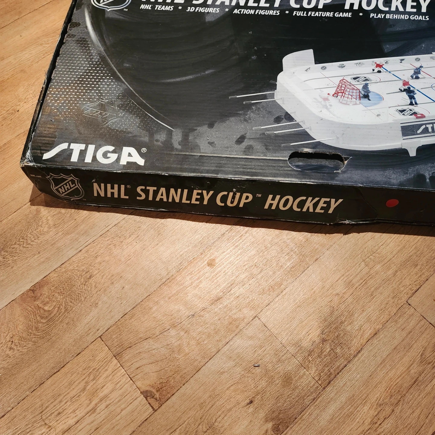 This is a STIGA NHL Stanley Cup Hockey game. It comes with 3D action figures and play behind the goals. It's a full feature game for hockey fans! Used a small crack on one side, all pieces included. New sells for $250.