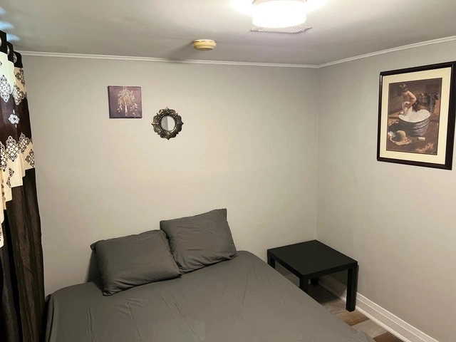 This private room is available for rent, perfect for a female tenant. The room is furnished with a cozy bed and basic furniture. It is located within a shared accommodation. No pets allowed. Furnished.