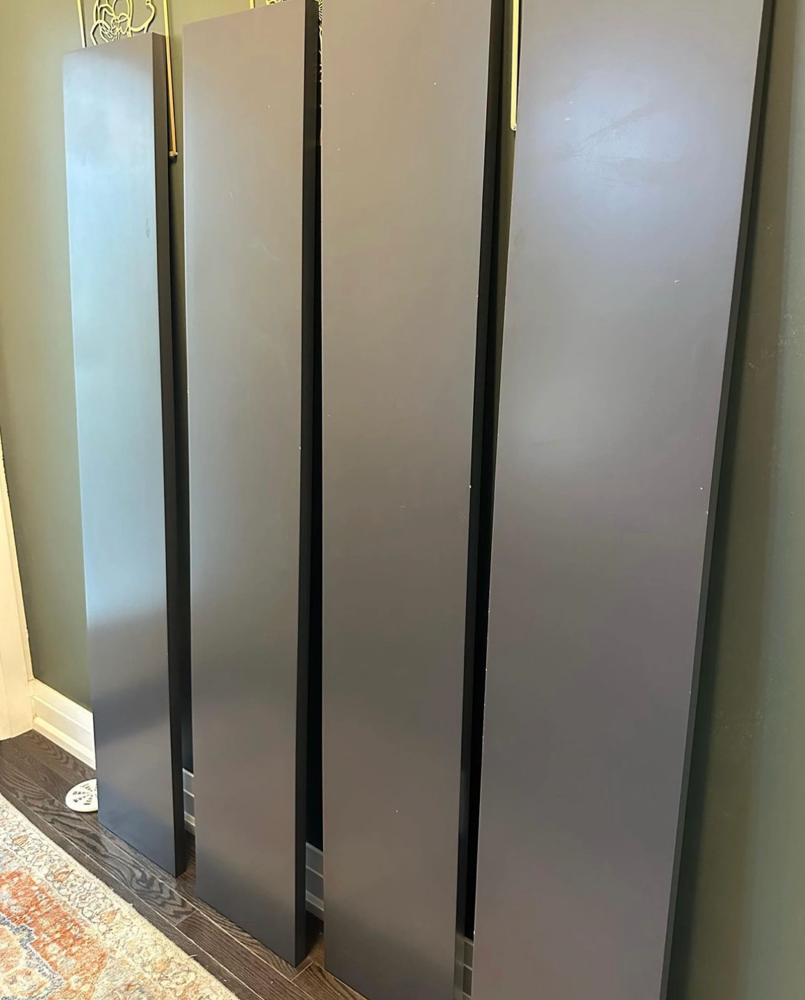 Please note that this shelf will come dissassembled for easy transport. All pieces accounted for.
