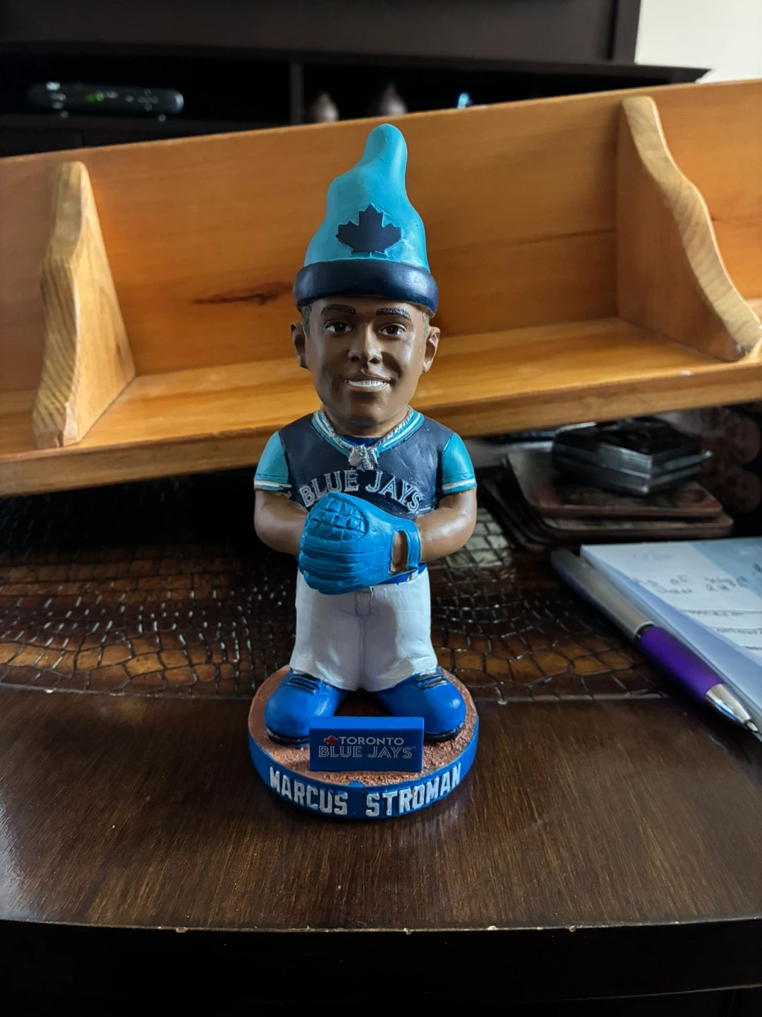 This is a Marcus Stroman Toronto Blue Jays knom . It features him in his team uniform. A great collectible for any Jays fan!