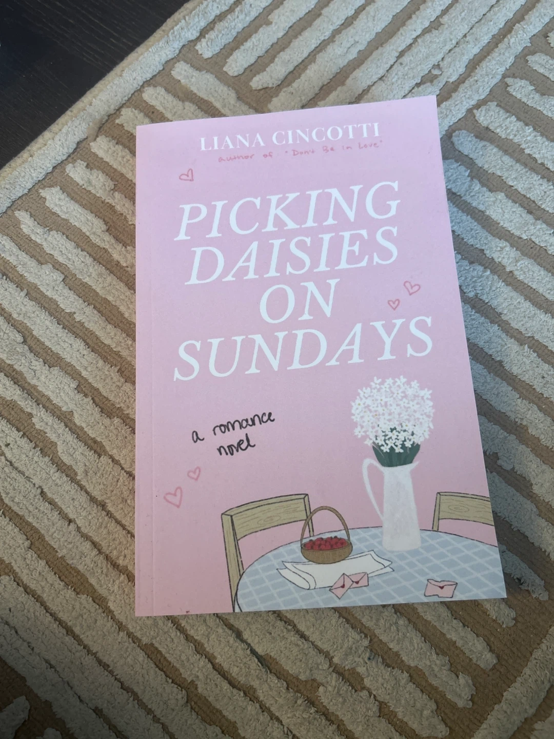 This is the romance novel 'Picking Daisies on Sundays' by Liana Cincotti. It's a paperback book with a pink cover.
