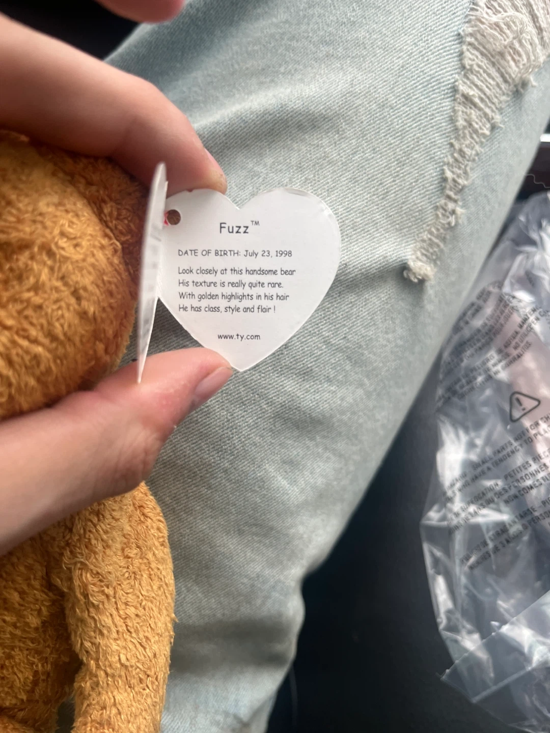 Selling a Ty Beanie Baby, Fuzz the bear! This handsome bear has a really quite rare texture and golden highlights in his hair. He has class, style and flair!