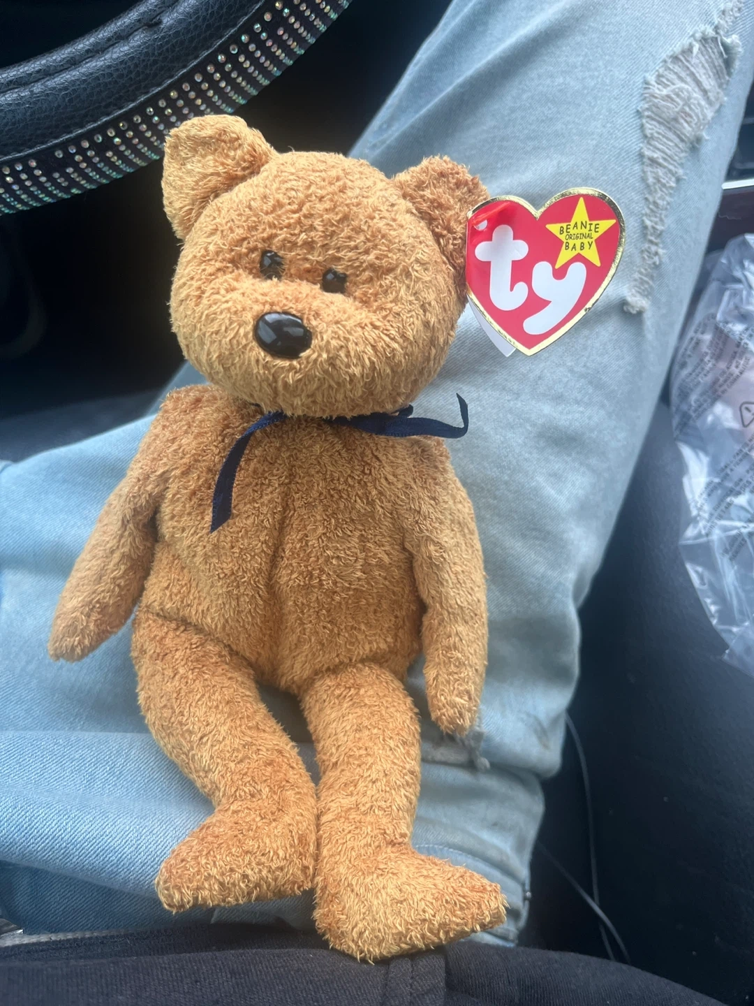 Selling a Ty Beanie Baby, Fuzz the bear! This handsome bear has a really quite rare texture and golden highlights in his hair. He has class, style and flair!