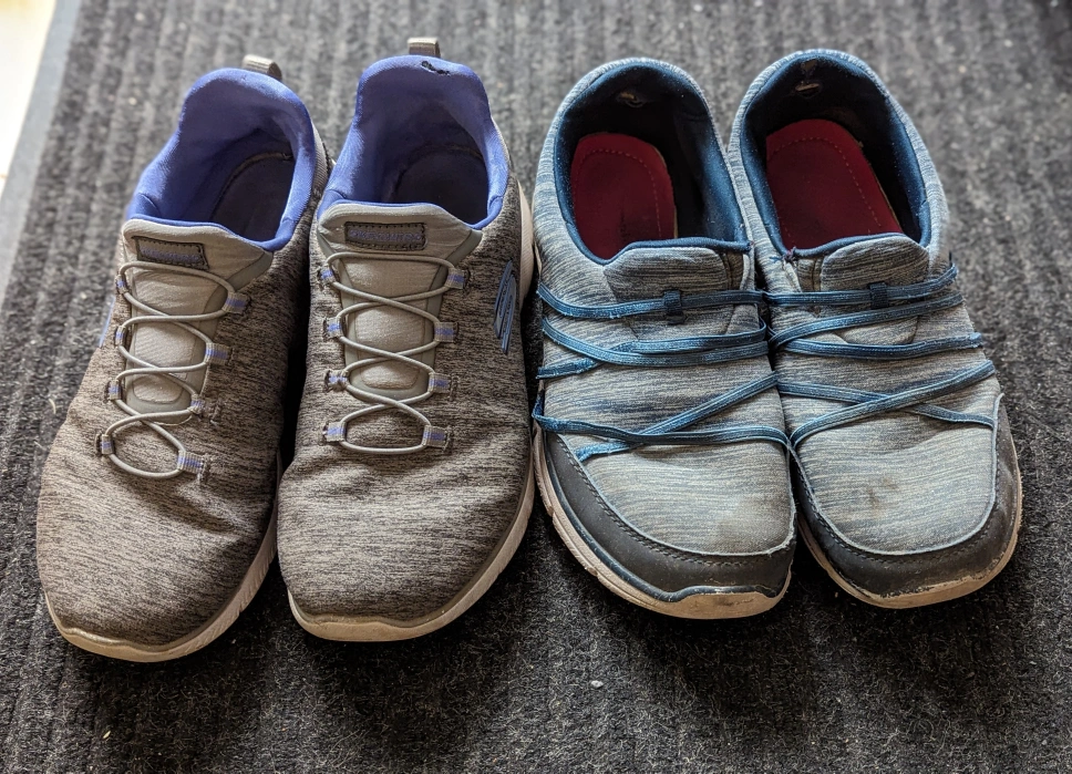 The pair on the left is from Skechers (size 8.5) & the one on the right is from Champion (size 9).