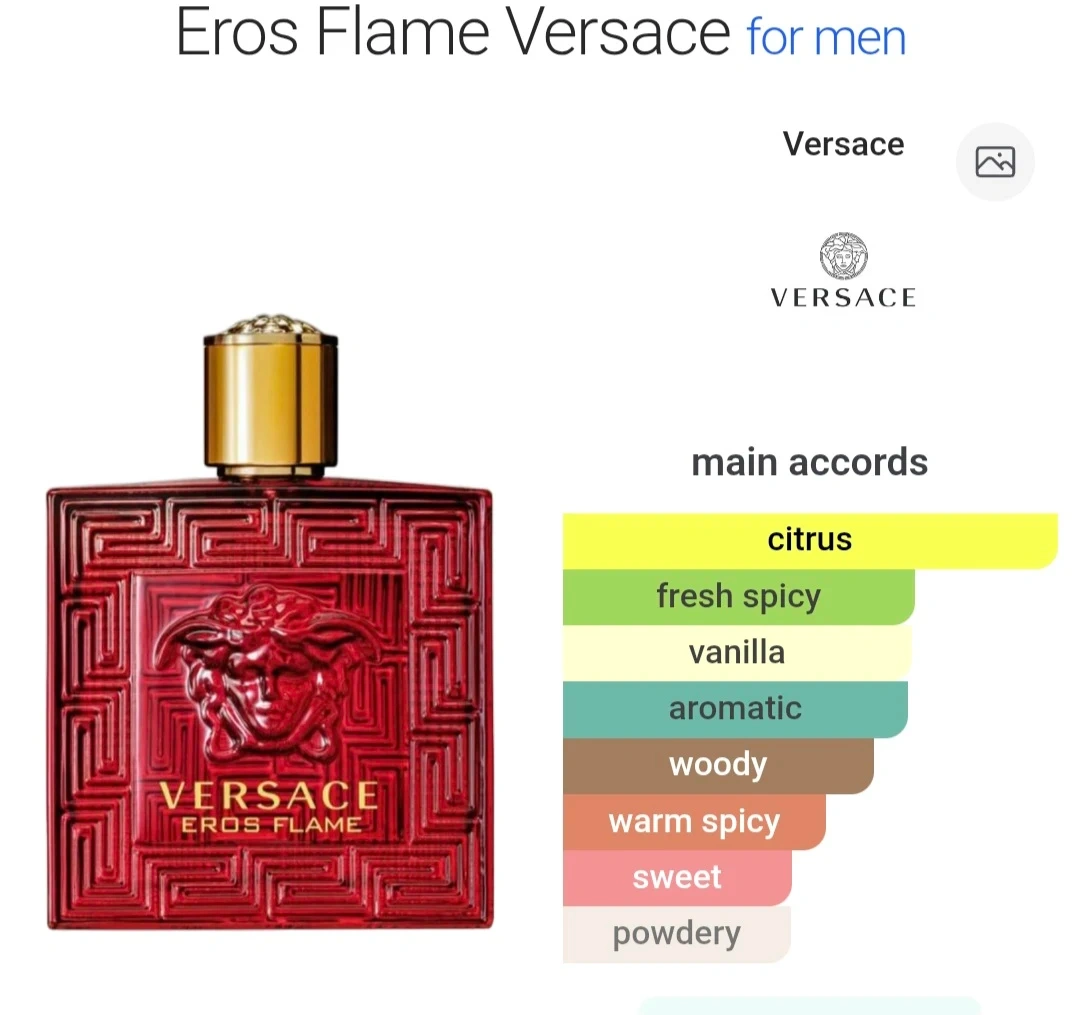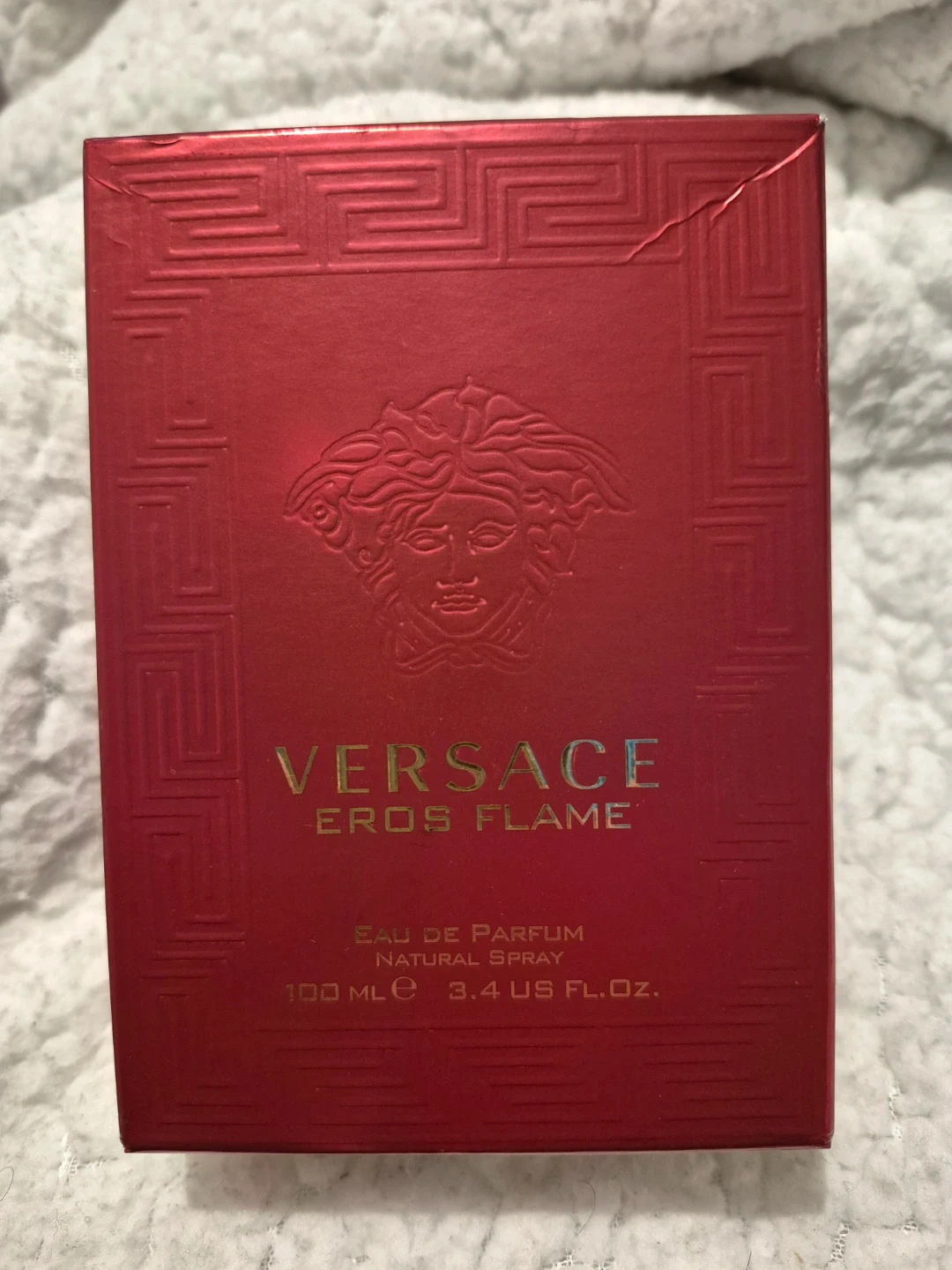 Versace Eros Flame Eau de Parfum for men. This fragrance comes in a 100ml bottle. It's a natural spray. Bottle made in Italy.