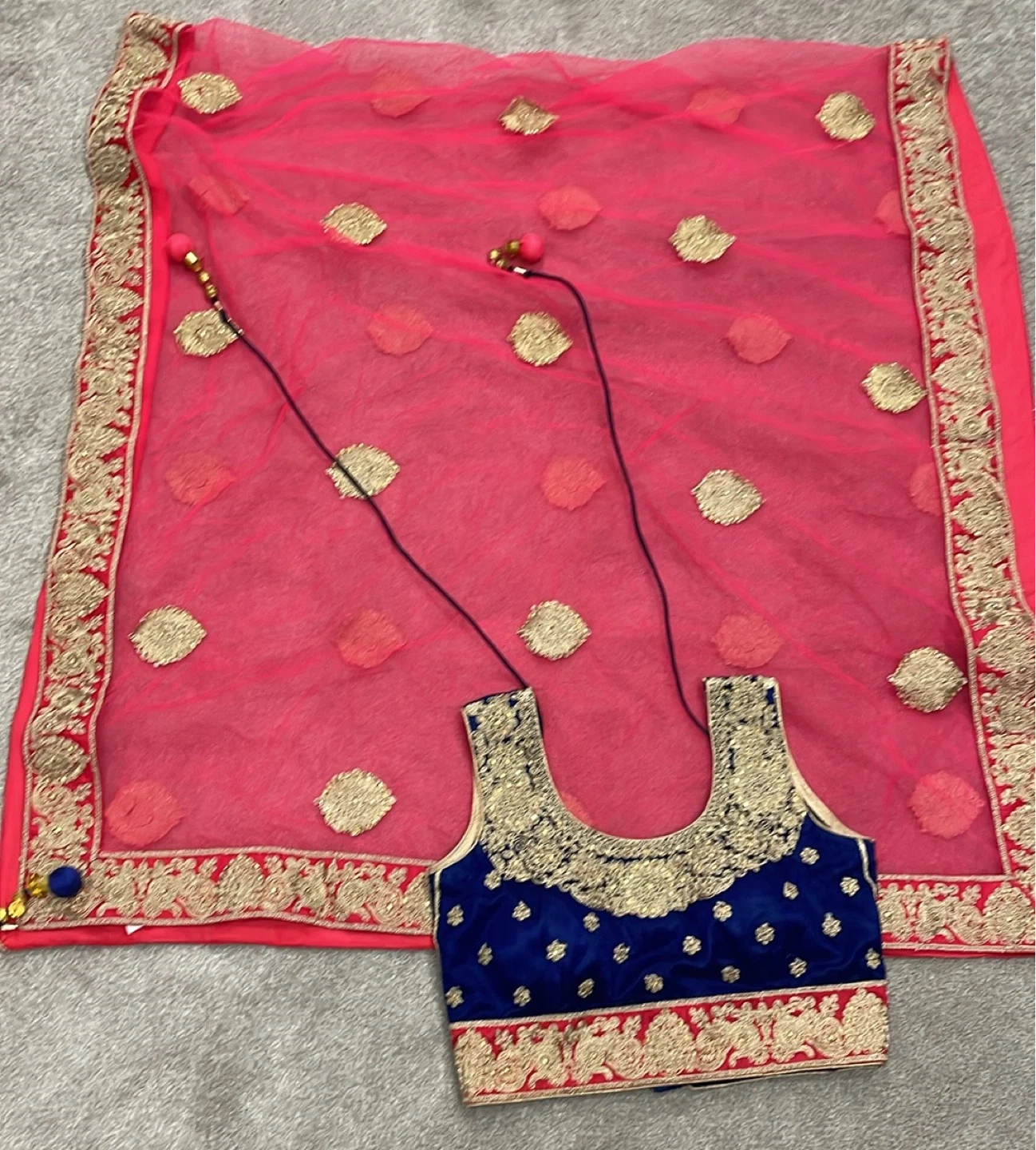 Pink Embroidered Net Dupatta with matching Blue Blouse