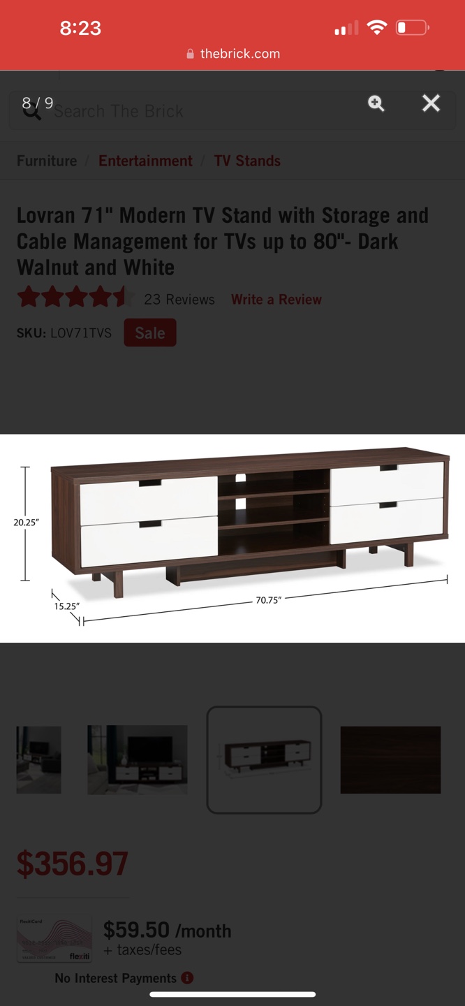 Lovran 71" Modern TV Stand with Storage and Cable Management for TVs up to 80"- Dark Walnut and White from The Brick