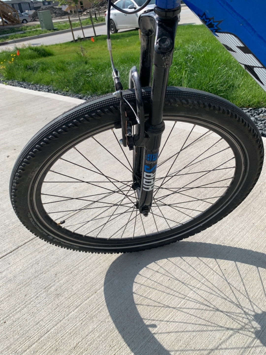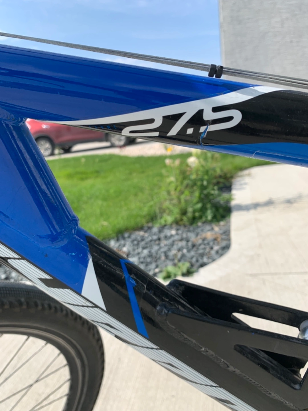 Selling a mountain bike that's ready for some action! It's a 27.5 inch bike with a cool blue and black colour scheme. Perfect for hitting the trails or just cruising around the neighbourhood. Back tire is slightly bent.