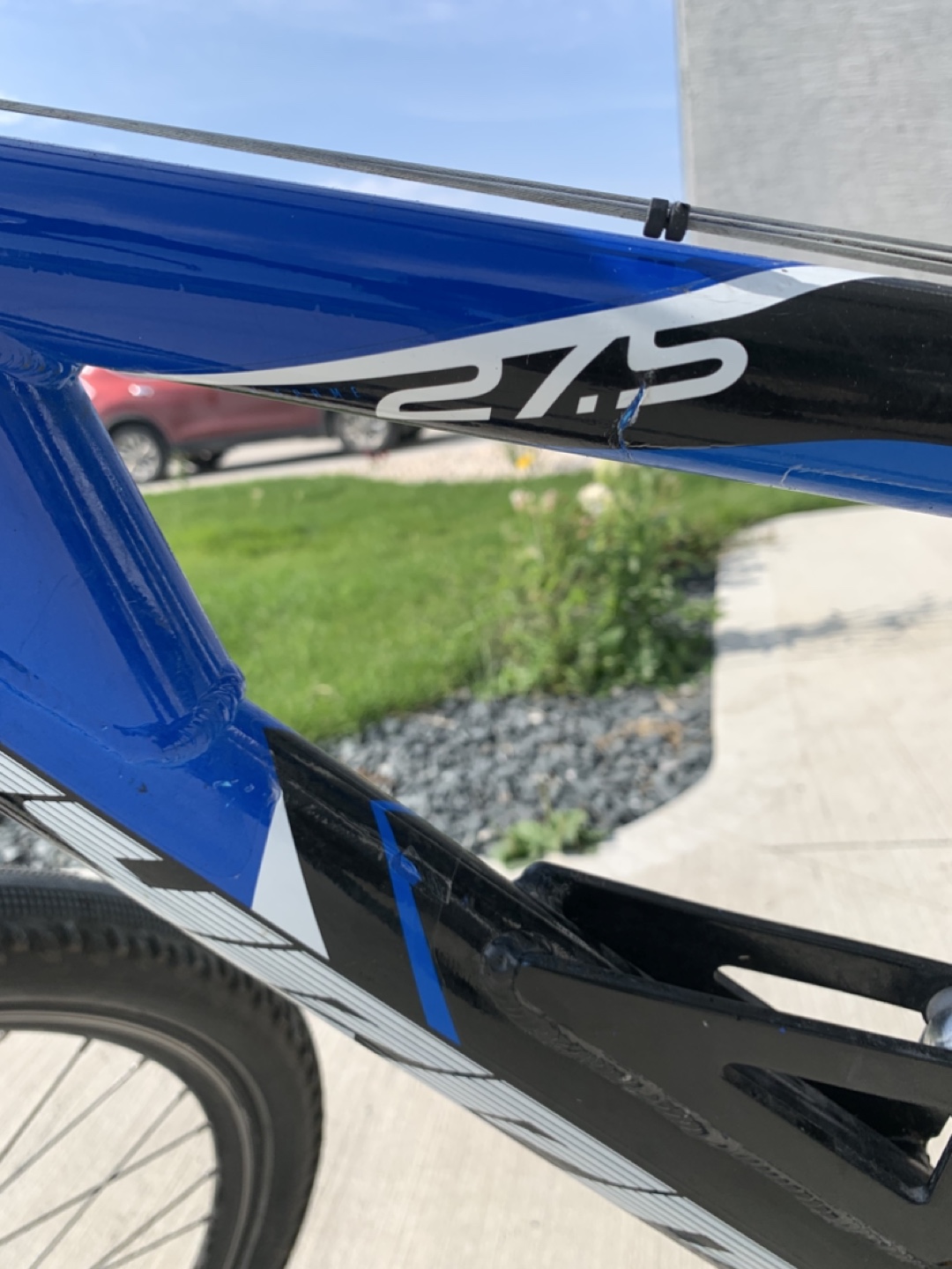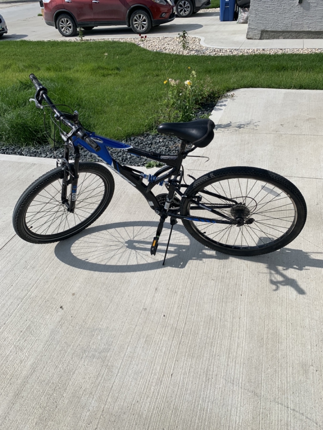 Selling a mountain bike that's ready for some action! It's a 27.5 inch bike with a cool blue and black colour scheme. Perfect for hitting the trails or just cruising around the neighbourhood. Back tire is slightly bent.