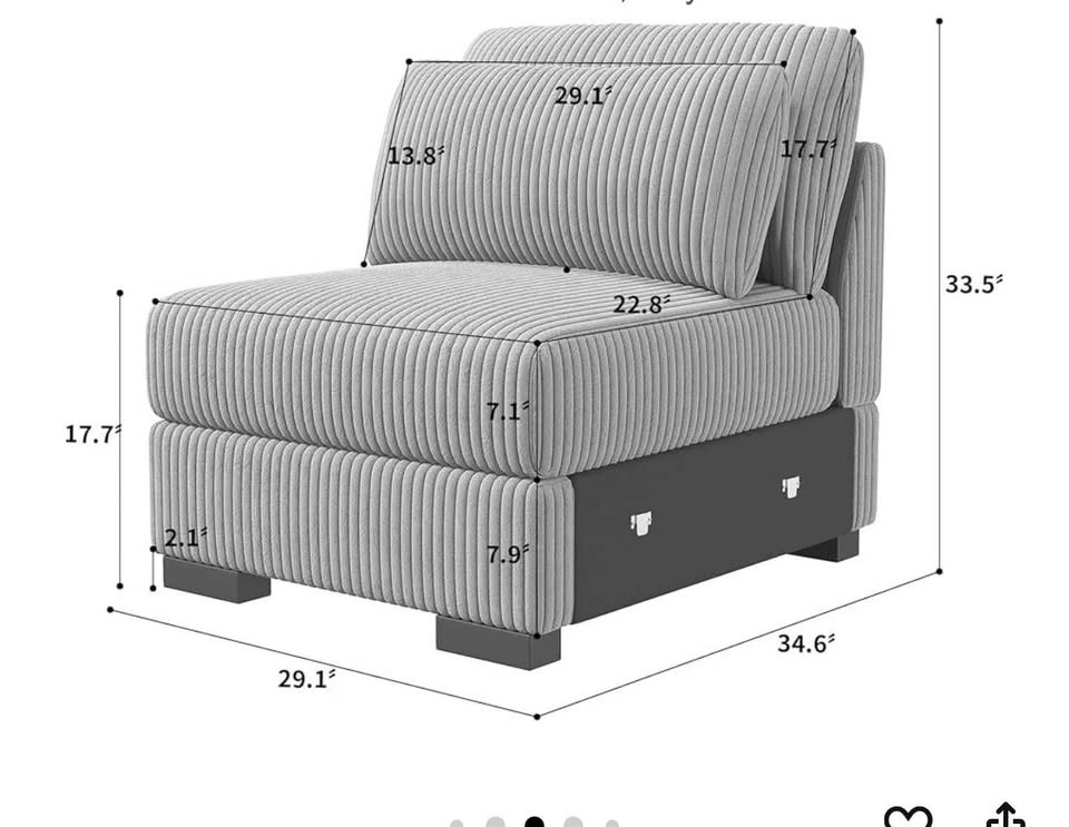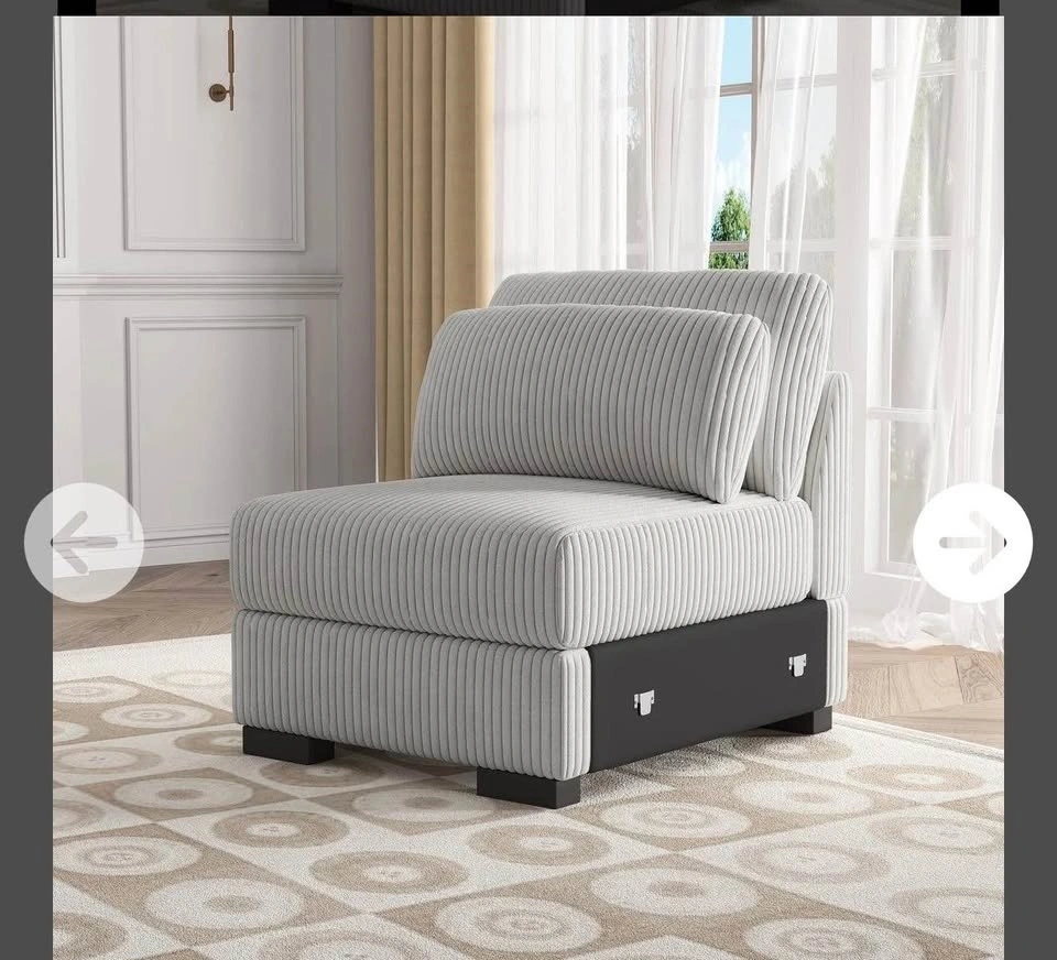 Beautiful corduroy armless accent chair with a matching lumbar pillow. Very stylish and comfortable, perfect for a living room, bedroom, reading corner, or office space.