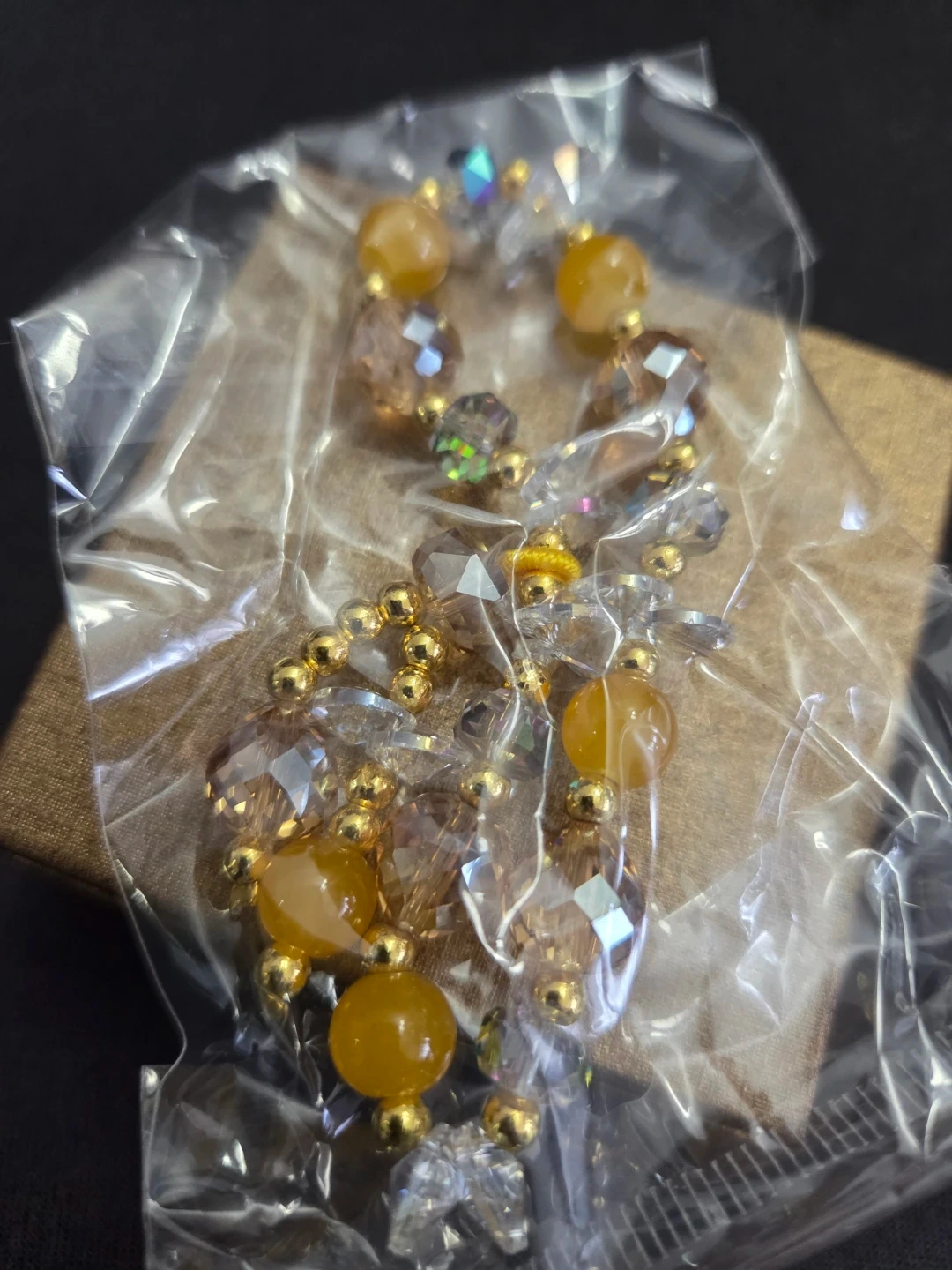 Selling a set of earrings that come with their original box! Get the golden beaded bracelet FREE with the earrings. They are both brand new and in excellent condition and ready to add a touch of sparkle to your day.