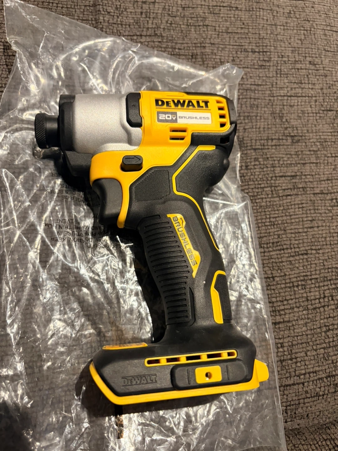 This is a brand new DEWALT 20V brushless impact driver. It's designed for tough jobs. The tool features a durable build and powerful performance.