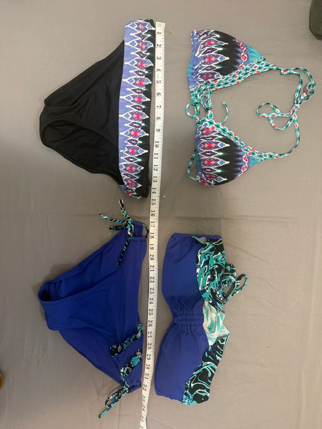 π Neon green bikini top with black trim. Shell is 82% Nylon and 18% Spandex. Lining is 100% Polyester. Made in Cambodia. This top is great for beach days or swimming! It's a size L/G