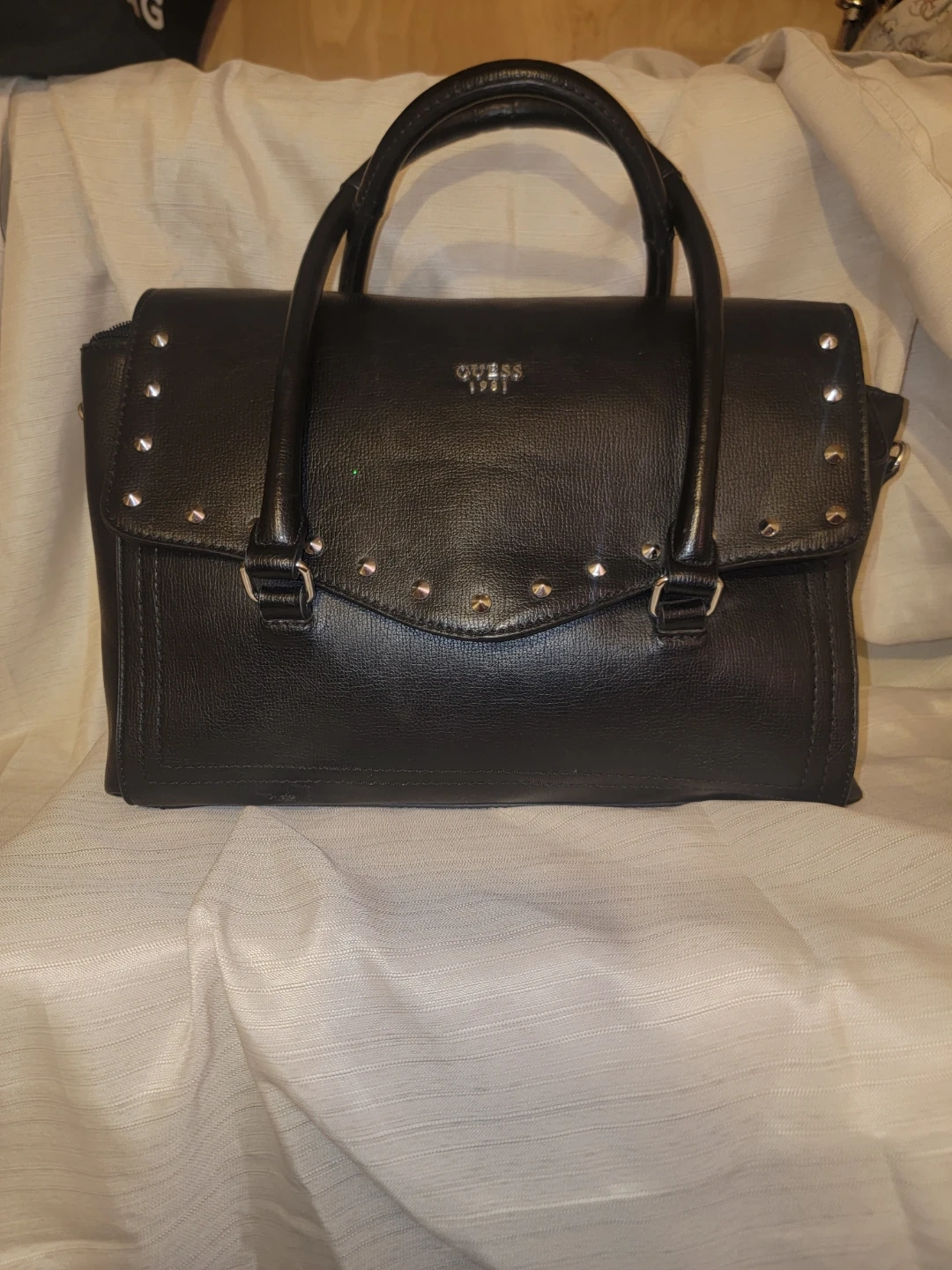 Guess Black Studded Satchel Handbag