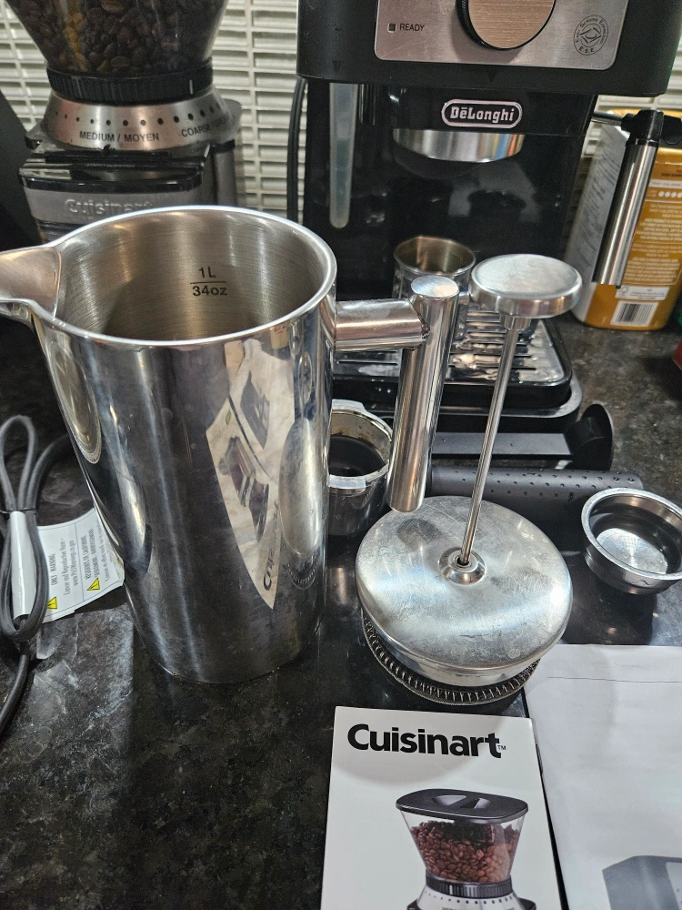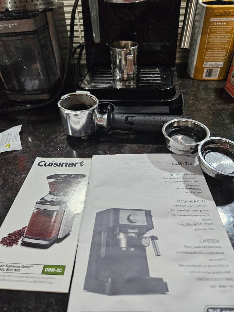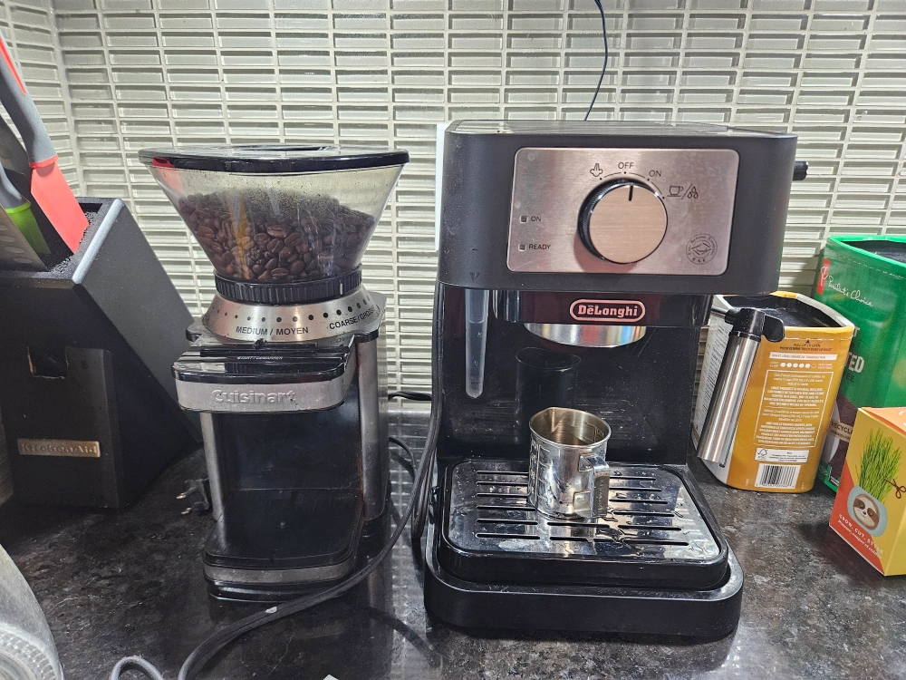 DeLonghi Espresso Maker and Cuisinart Coffee Grinder