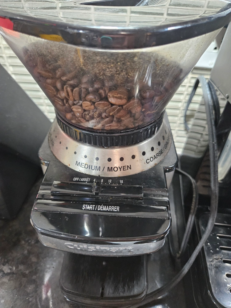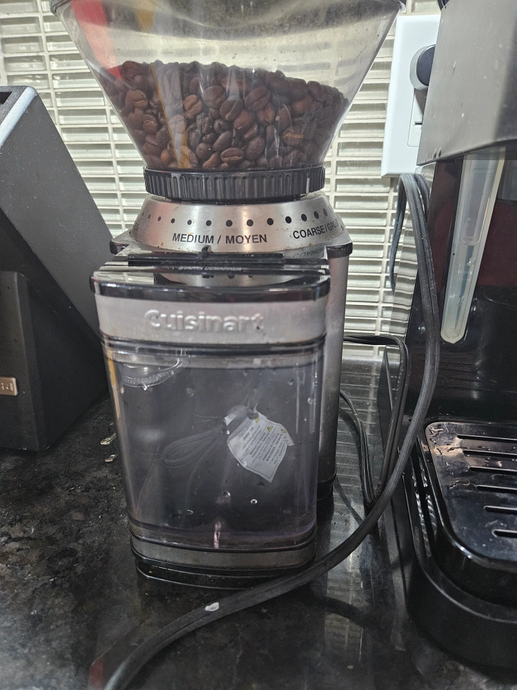 Coffee grinder and l has multiple settings for fine to coarse grinding.