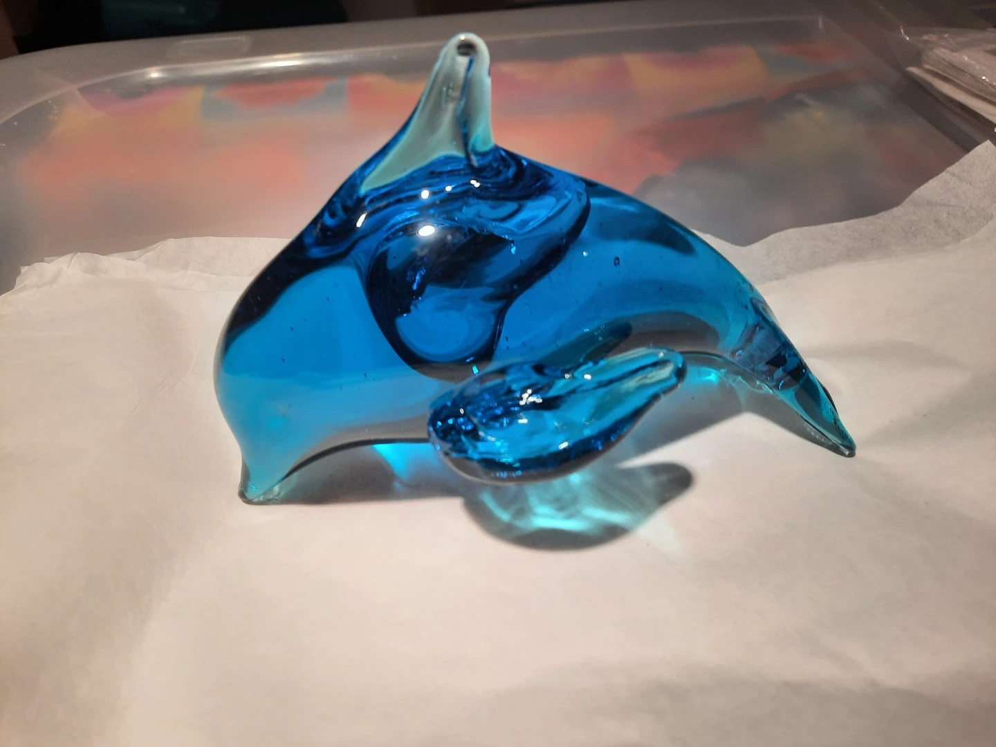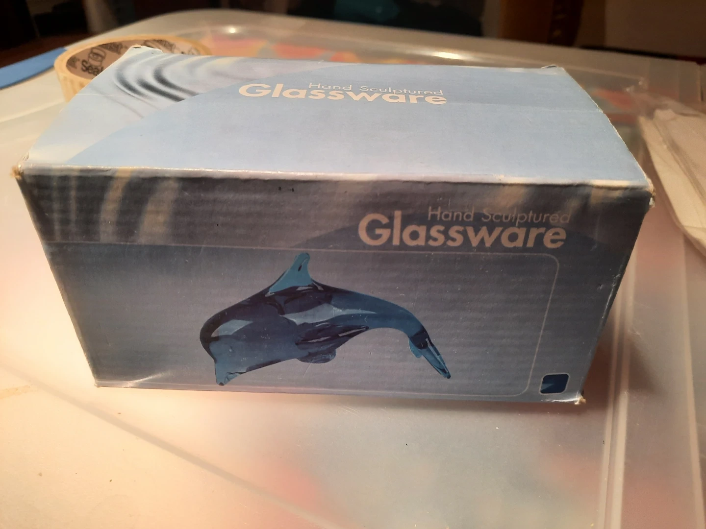 Selling a beautiful hand-sculpted glass dolphin figurine! It's a stunning piece of glassware that would look great in any home. The figurine is in excellent condition and comes with its original box