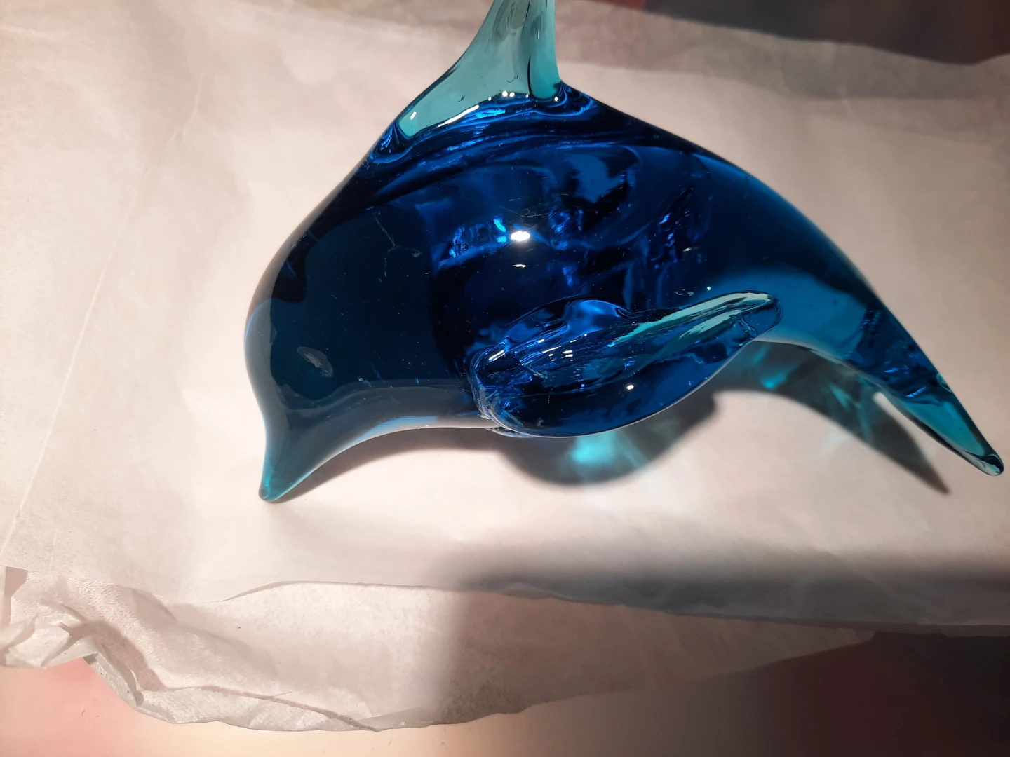 Selling a beautiful hand-sculpted glass dolphin figurine! It's a stunning piece of glassware that would look great in any home. The figurine is in excellent condition and comes with its original box