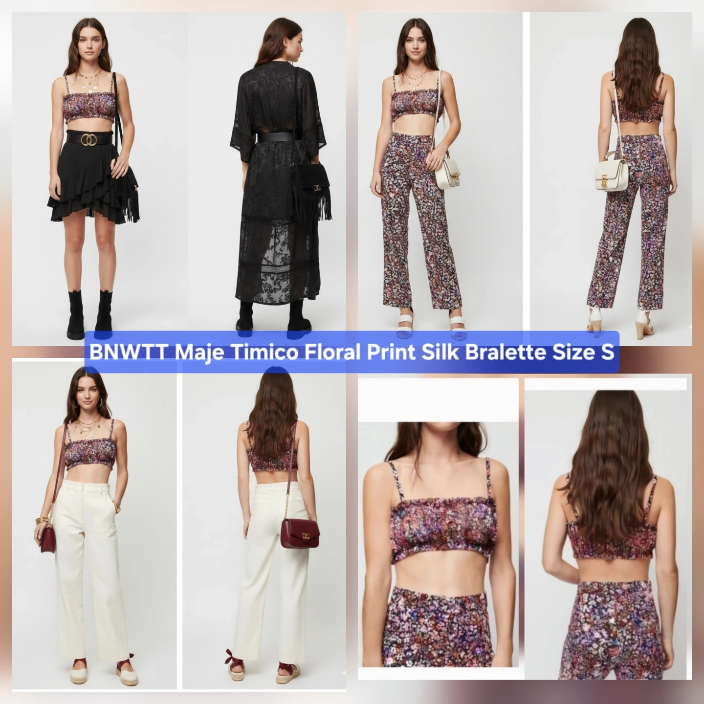 BNWTT Maje Timico Floral Print Silk Bralette Size S/M