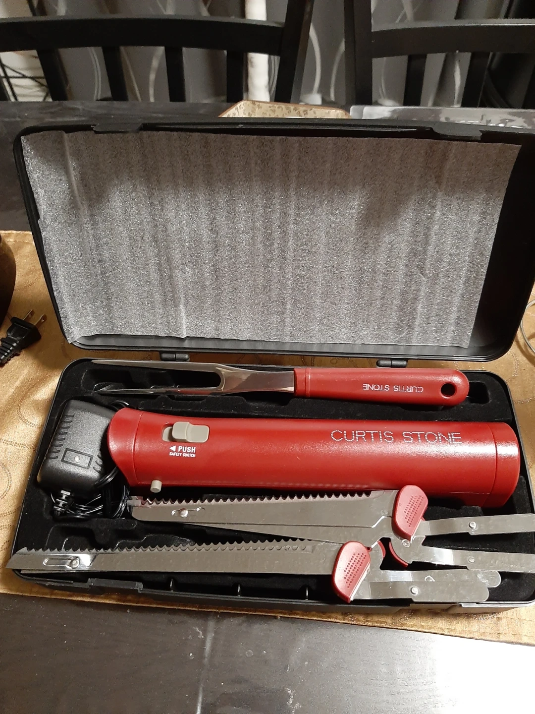 Buy & SellCurtis Stone Electric Knife Set with CaseCurtis Stone Electric Knife Set with Case$26Curtis Stone electric knife set. Includes knife, carving fork, power adapter, and storage case. Blades are serrated.WHERE TO MEETMeaford and St.Vincent Community CentreView MapSELLERJoanne MarshMeaford200 reviews0 chats·0 favorites·7 viewsSEND CHAT TO SELLERHi Joanne Marsh! I’m interested in your listing.Hi Joanne Marsh! I’m interested in your listing.Get the Karrot app to chatSign In to chat