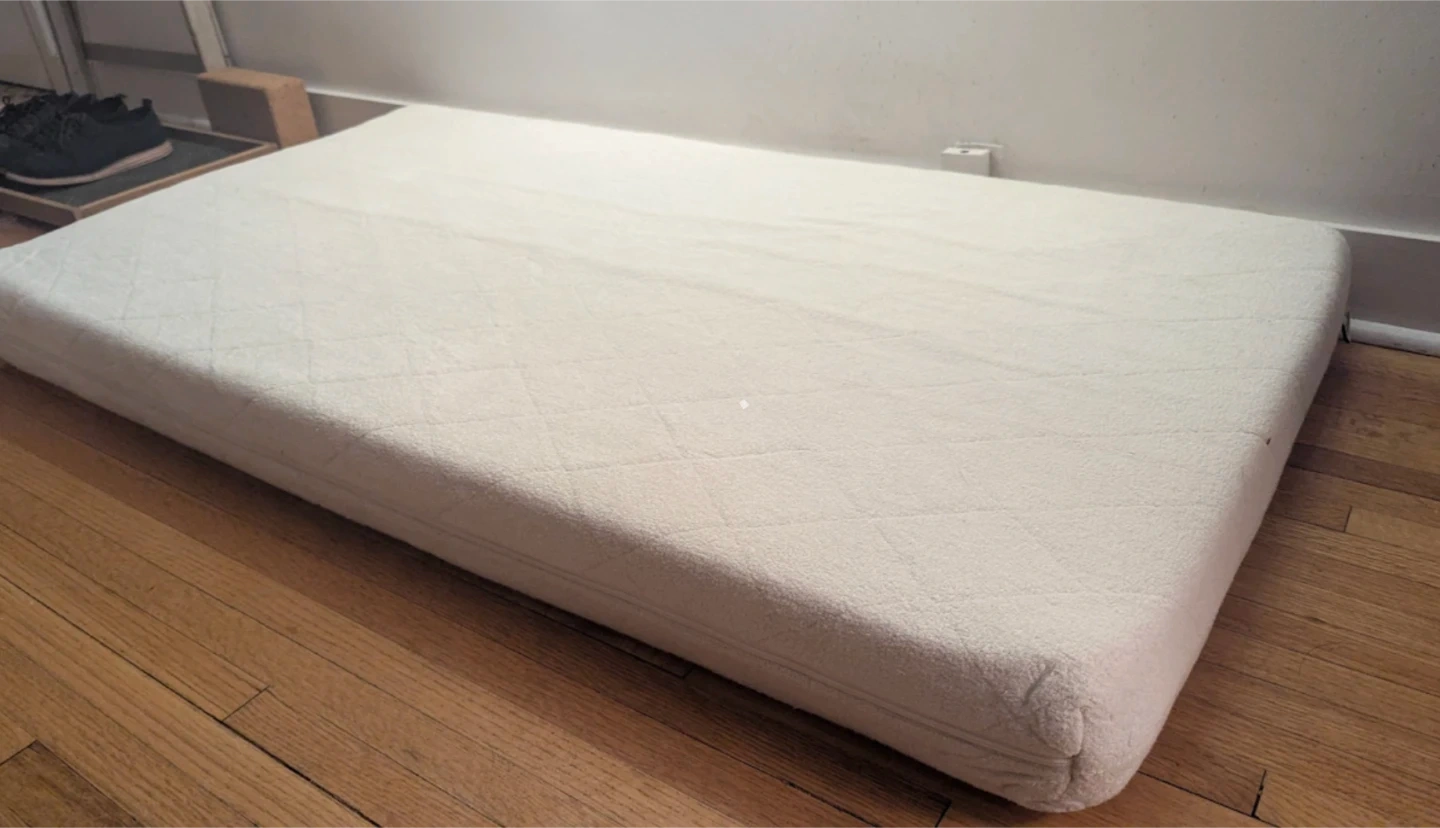 Soft cotton quilted standard sized crib mattress. One side is firmer to provide more support for infants and the other side is a little softer for toddlers. Purchased to use as a dog bed but my dogs prefer to use the sofa. Has always been used with a waterproof cover. Smoke-free home. Pick-up in Belgravia π