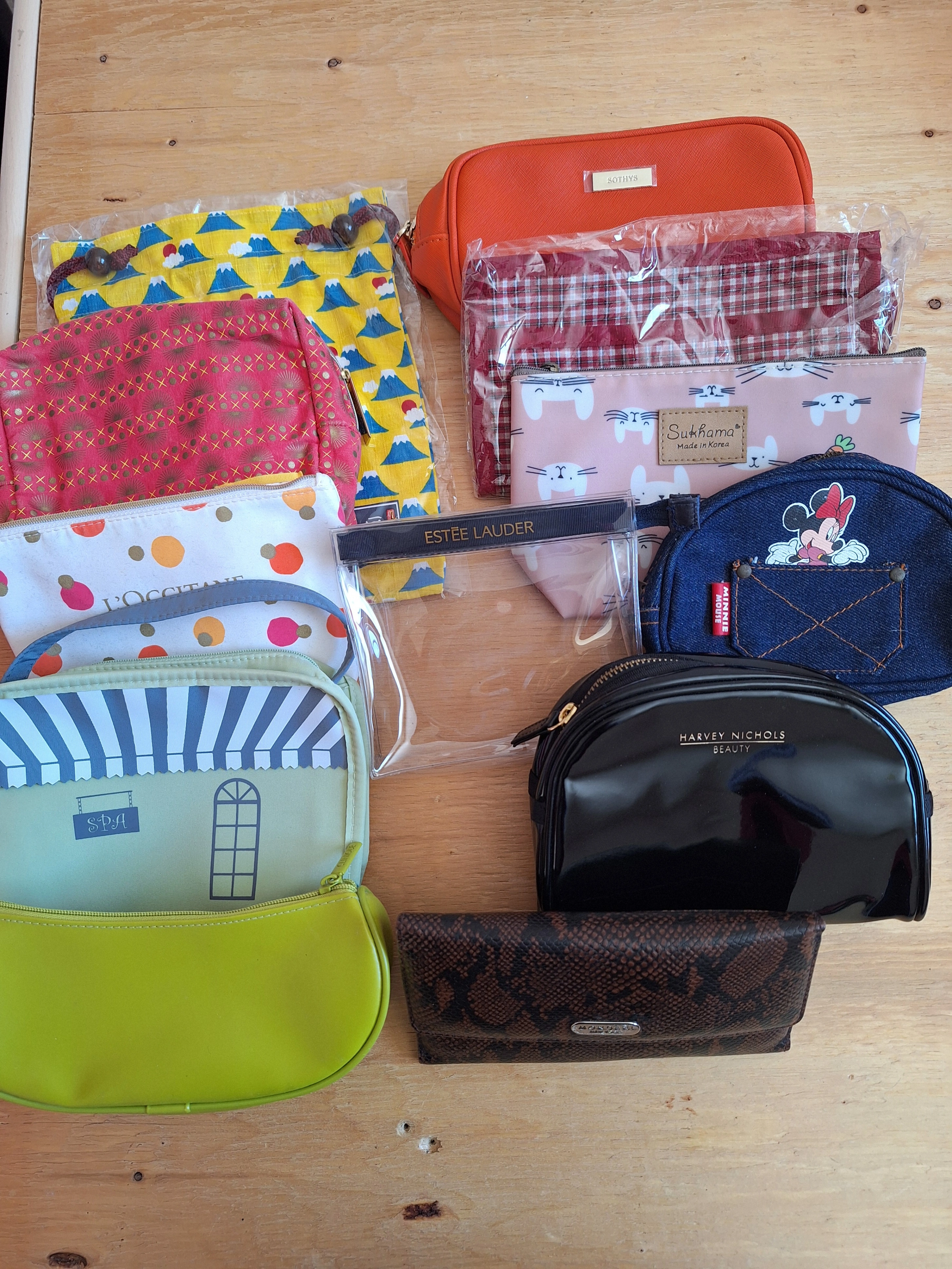 Selling a collection of various makeup and cosmetic bags! Brands include Estee Lauder, Sothy's, Sukhama, Harvey Nichols Beauty, and SPA. Great for organizing your makeup or toiletries for travel