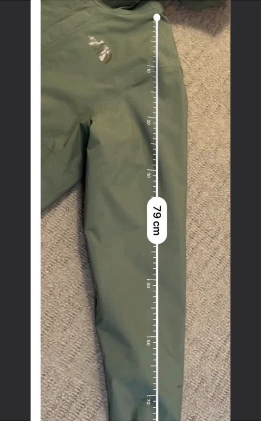Here's a The North Face rain jacket in a nice olive green colour! The measurements are approximately 51cm across the bottom, 70cm in length, 41cm across the shoulders, and the sleeves are 79cm long