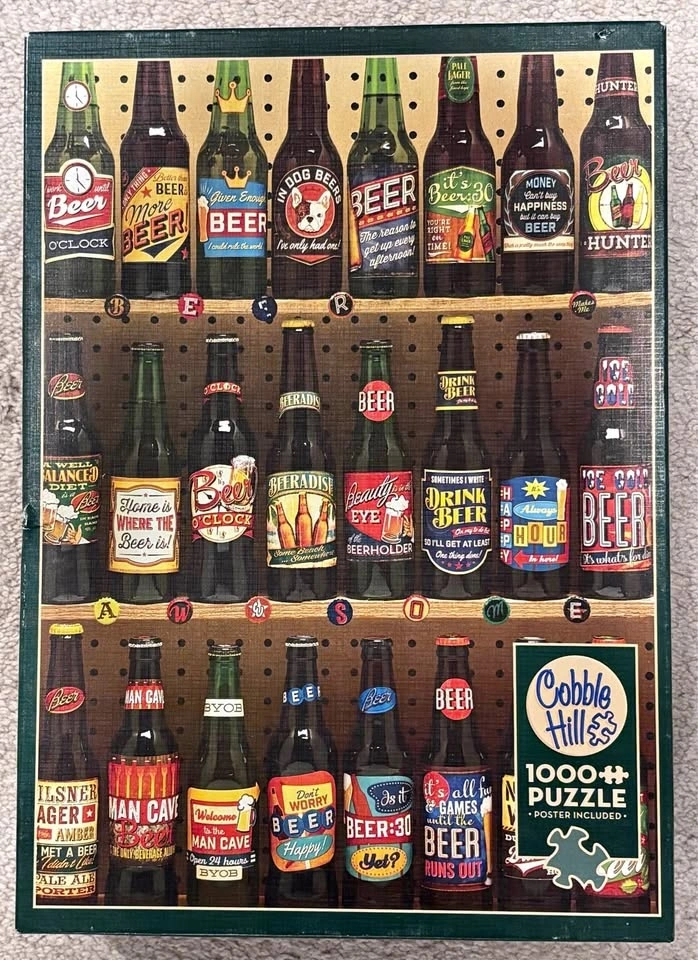This Cobble Hill 1000 Piece Puzzle - Beer Collection was only completed once and it has all the pieces. Comes from a smoke free, pet free home.