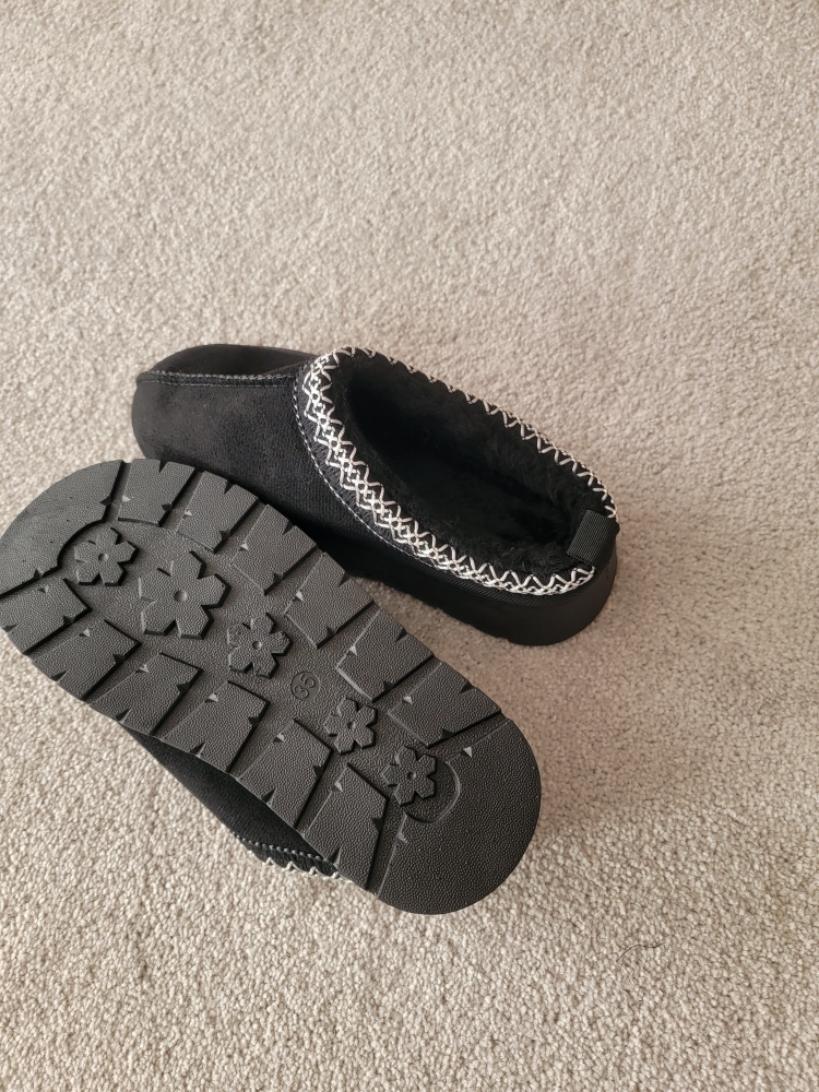 Cozy black slippers in great condition! They're a size 5 and perfect for keeping your feet warm on chilly days. The inside is super soft and comfy