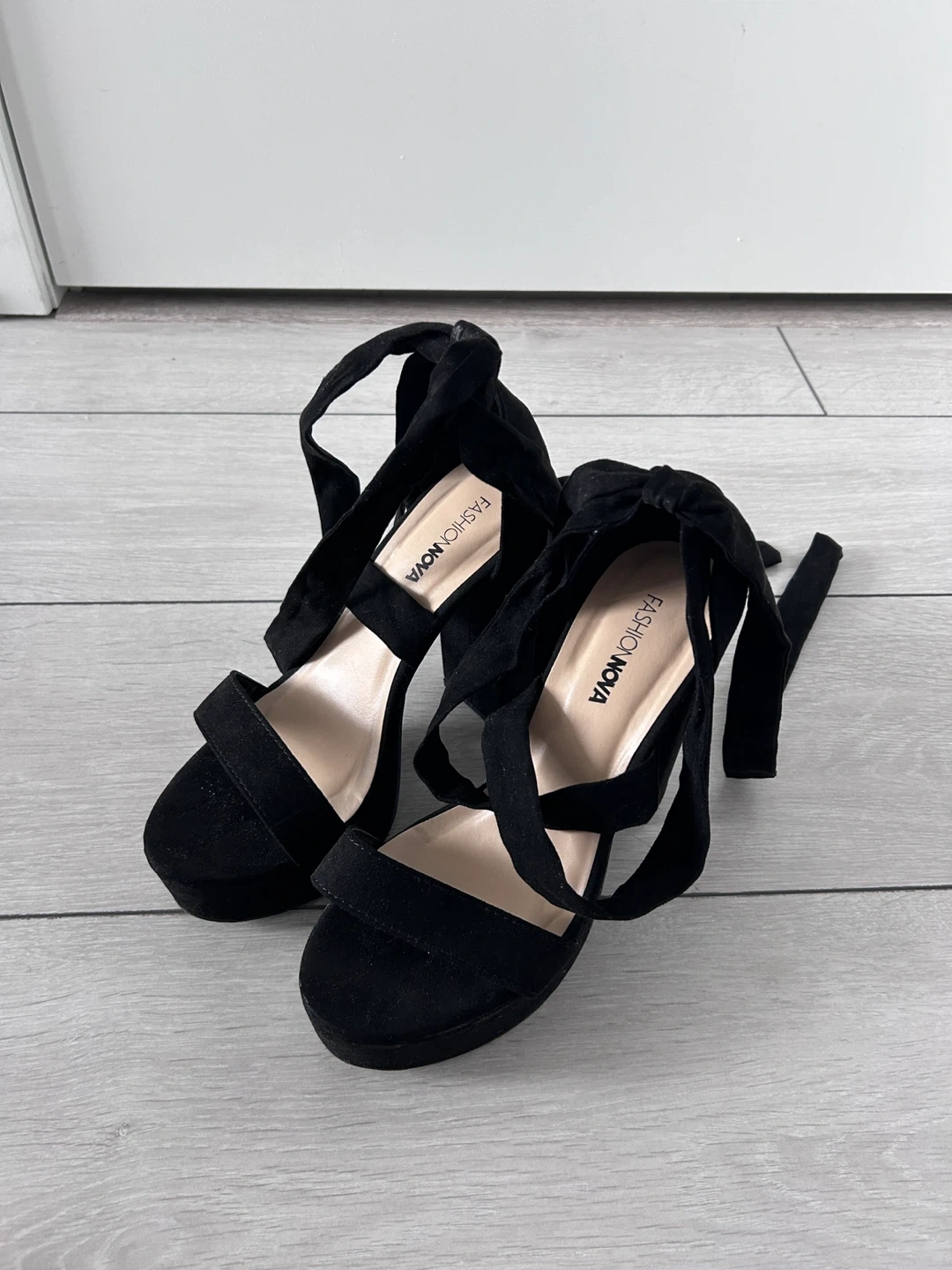 Fashion Nova Black Suede Platform Lace-Up Heels